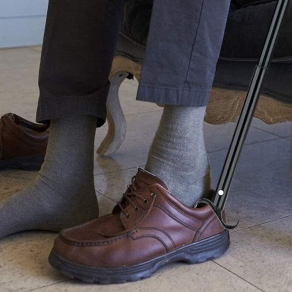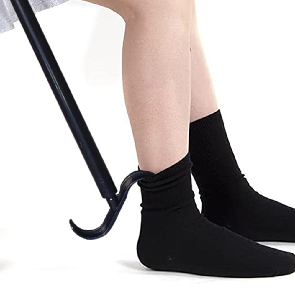 S-Hook Design: Helps pull up pants, skirts, or shirts and removes socks without bending or straining