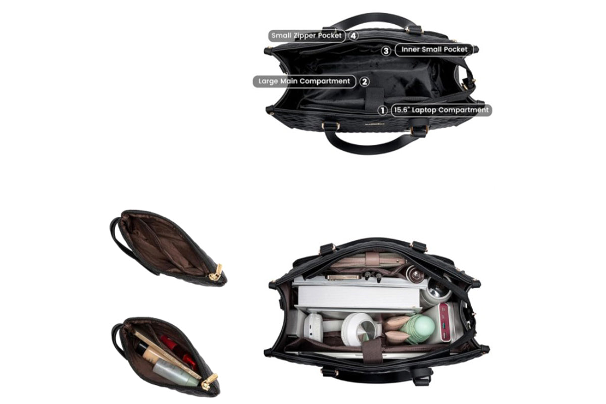 Stay organized and stylish with this 2-in-1 tote bag featuring an insulated lunch compartment and multiple pockets for daily convenience.