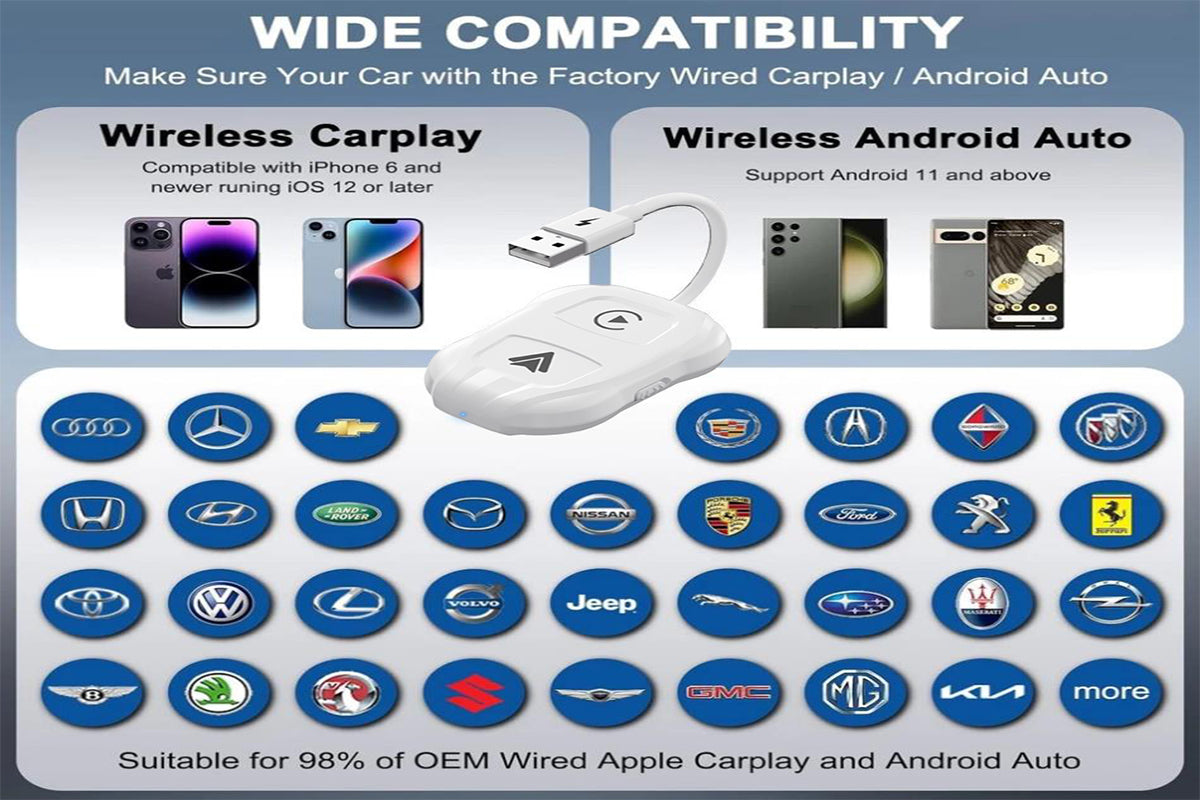 - The wireless carplay adapter offers an innovative solution for integrating your smartphone with your vehicle¡¯s infotainment system seamlessly. Designed to support both Apple CarPlay and Android Auto functionalities wirelessly, this adapter ensures a hassle-free setup and broad compatibility.