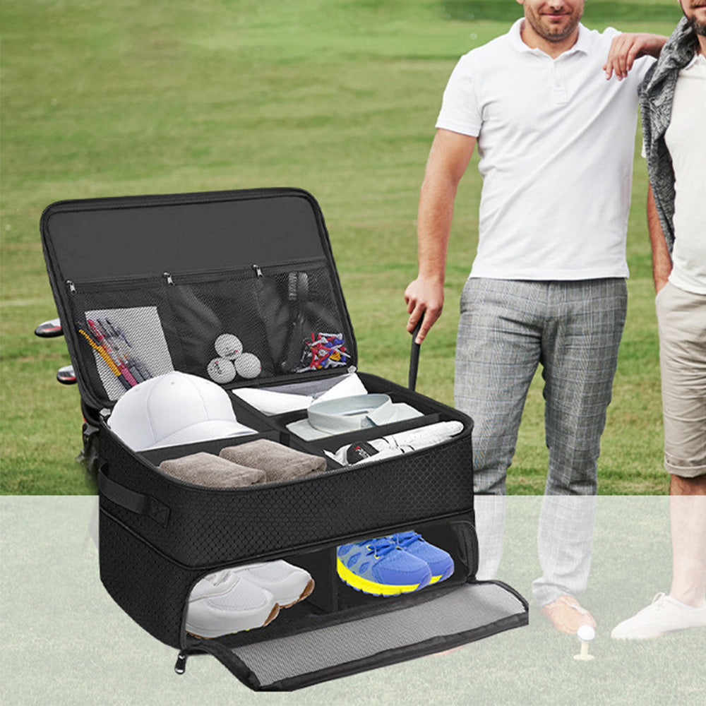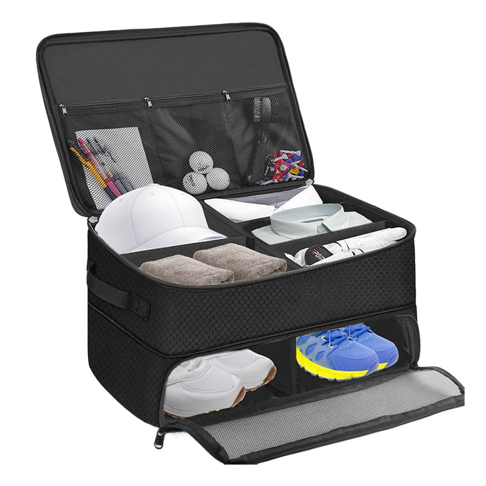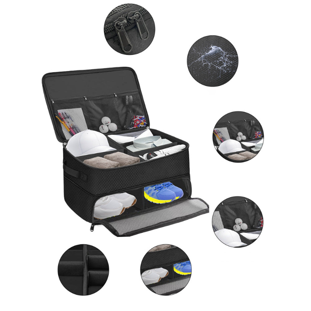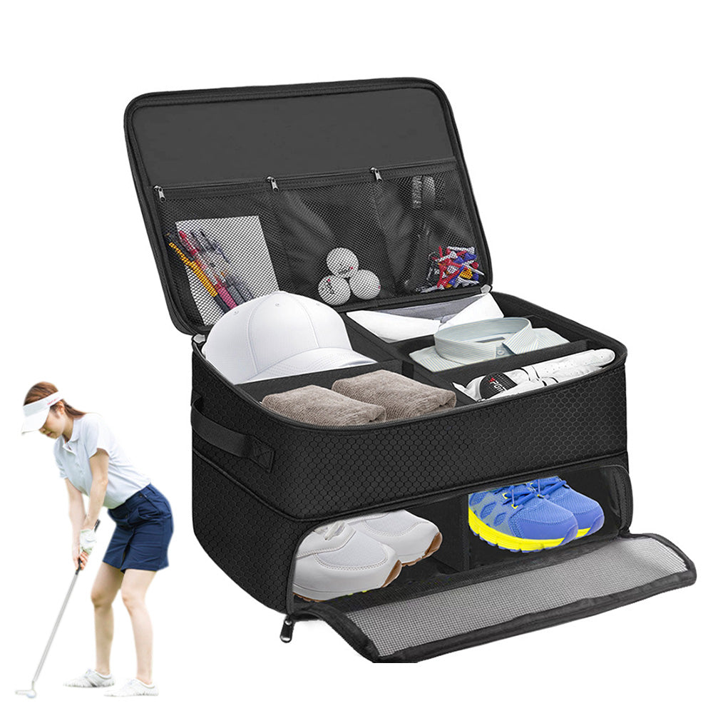 2-Layer Golf Trunk Organizer Golf Accessories Locker with Separate Compartment for Shoes Clothes Gloves