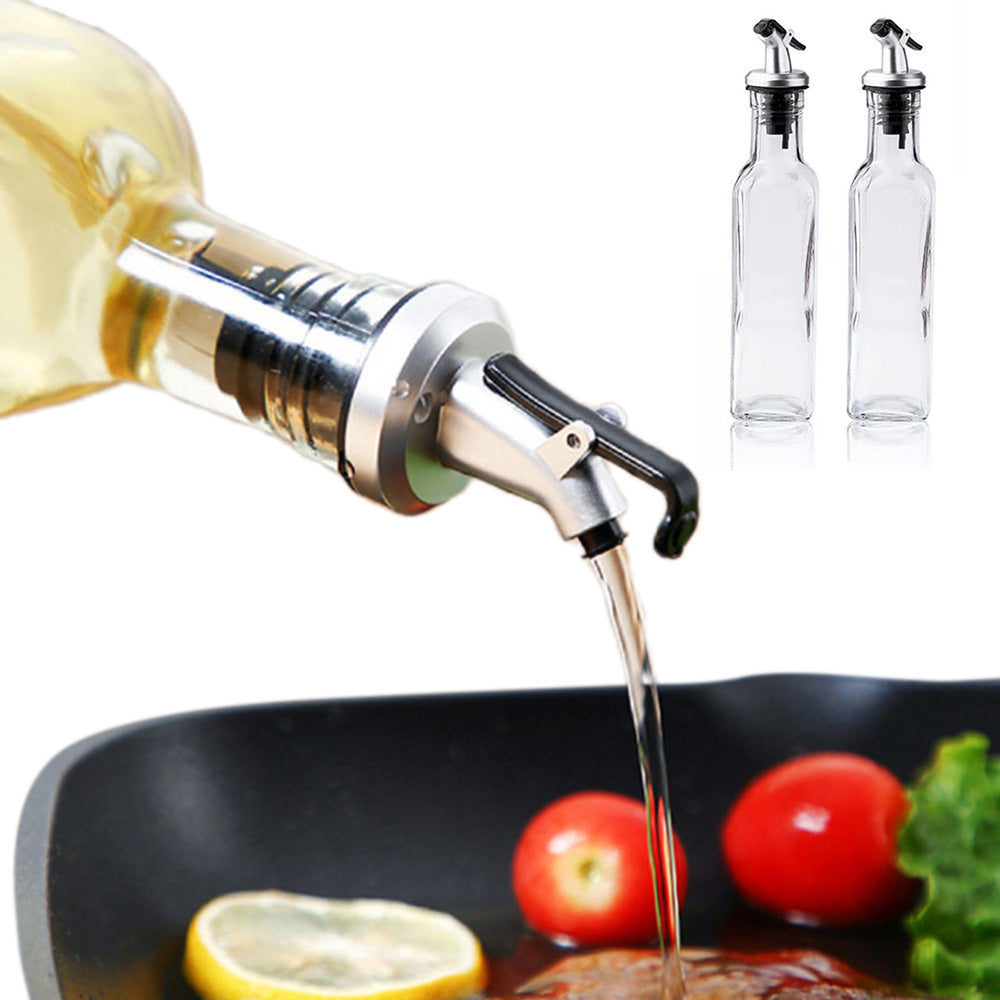 2 Pack 250ml Oil Dispenser Vinegar Pourer Glass Bottle Kitchen Cooking Tools