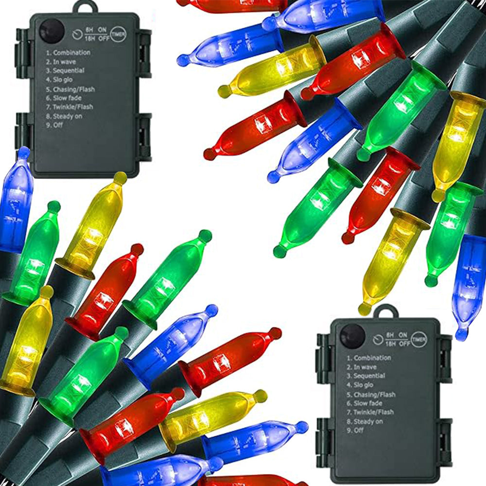 2 Pack Dazzle Bright Christmas String Lights Battery Operated 8 Modes Lights String Holiday Xmas Decorations Mixed Color