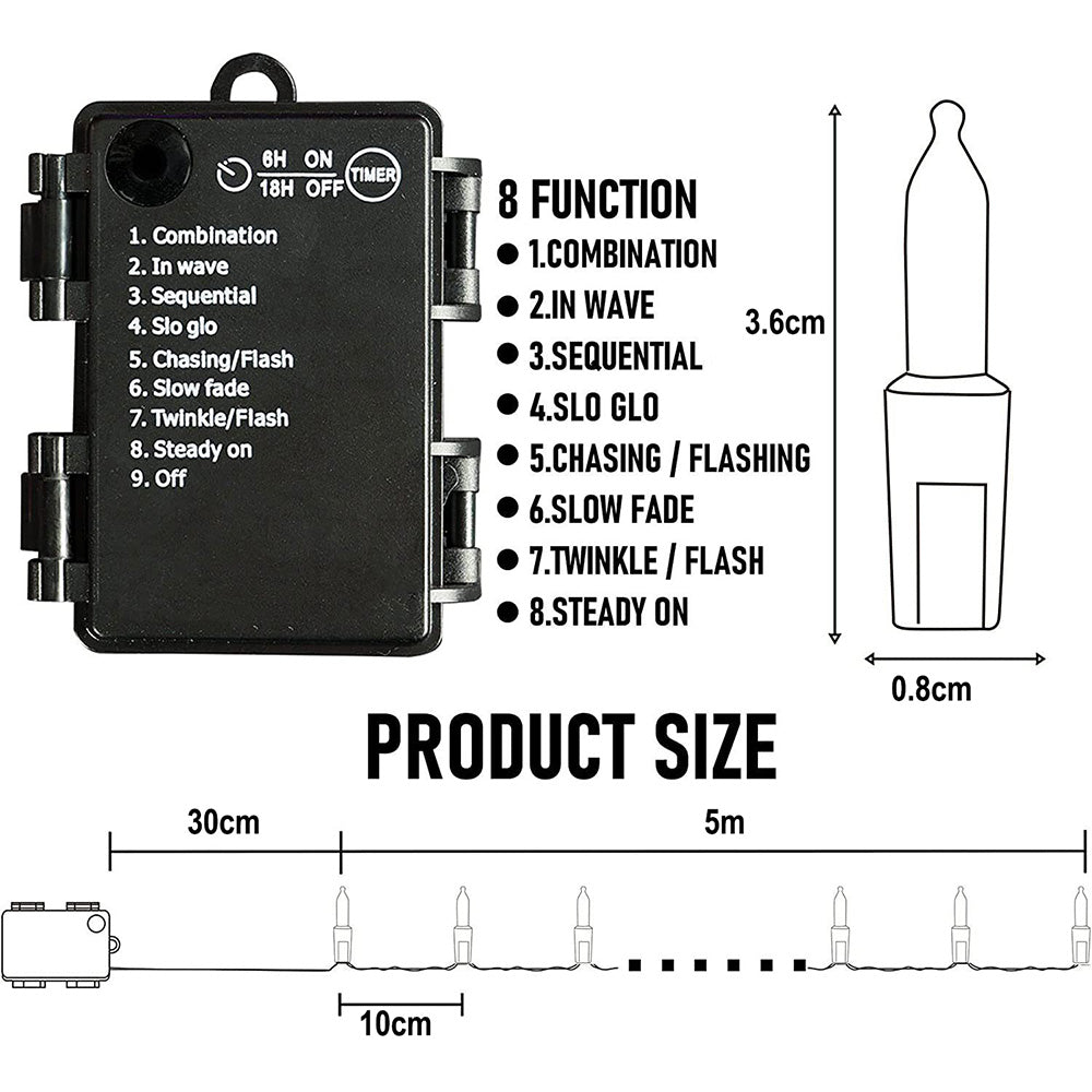 - Both the battery box and fairy light string are rated IP67 water-resistant, making them ideal for outdoor holiday and Christmas decorations.