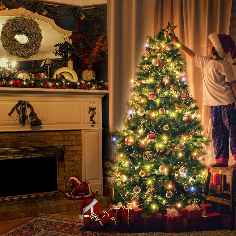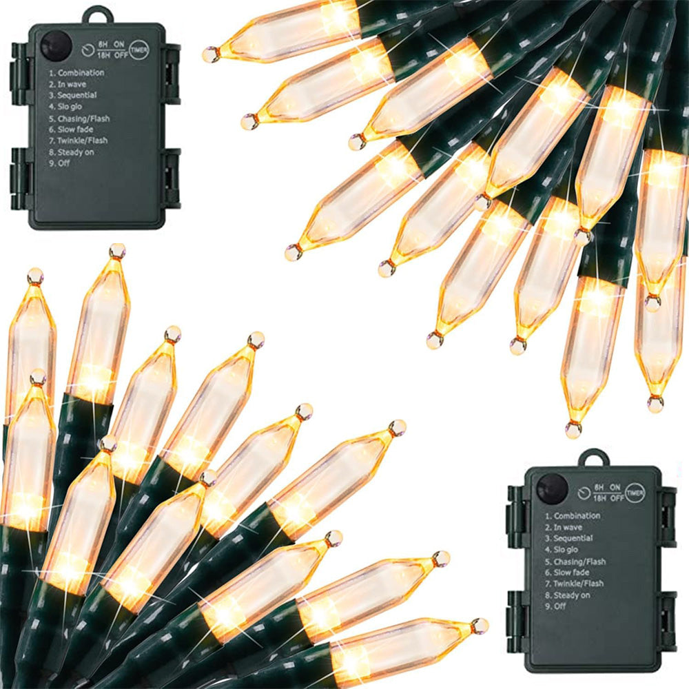 These Christmas tree light bulbs are battery-operated, water-resistant, and feature 8 lighting modes with a built-in timer, perfect for festive indoor and outdoor decorations.