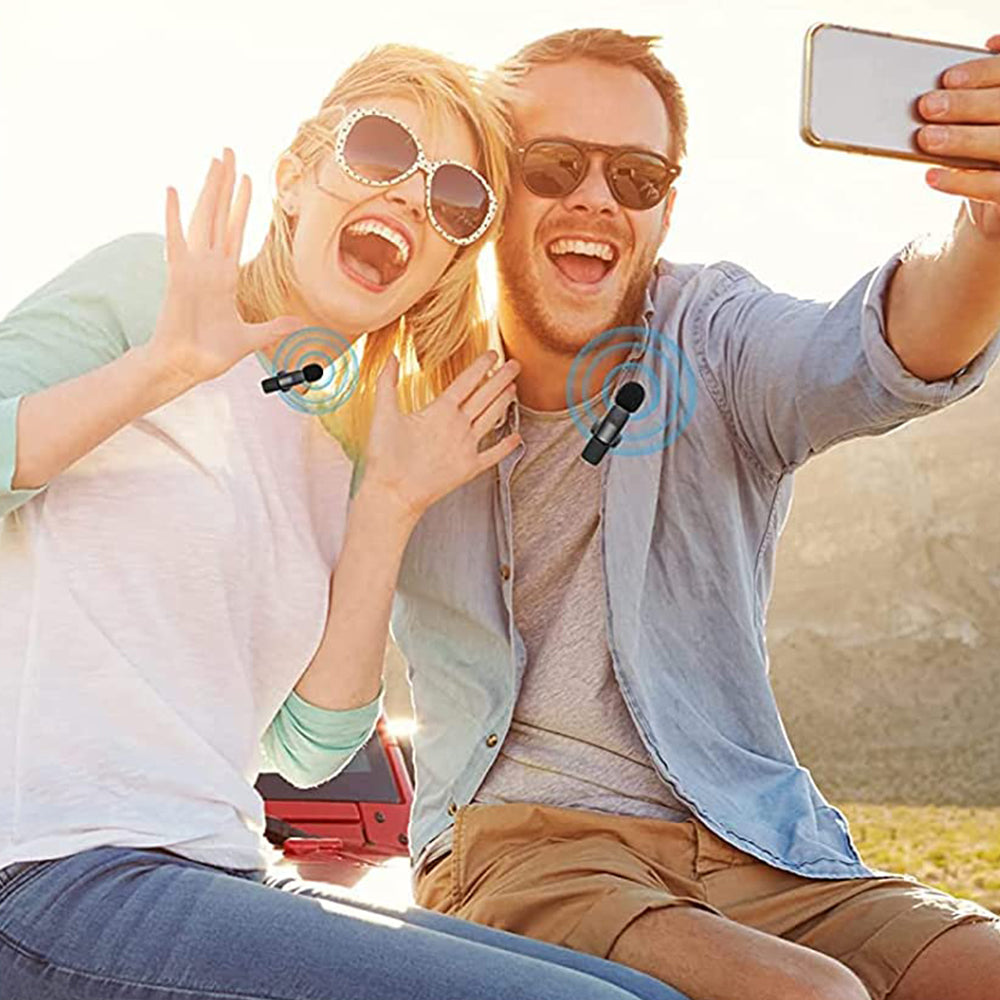 2 Pack Wireless Lavalier Microphone Mic for Android iPhone iPad Vlog Live Stream