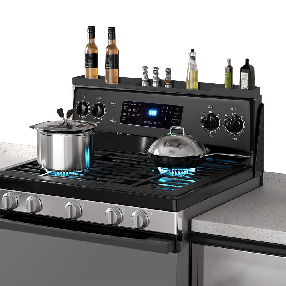 2 Pcs Magnetic Stove Top Spice Rack Silicone Stove Oven Top Shelf Organizer Kitchen Shelf Gadgets Black