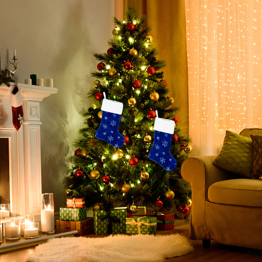 2 Pcs Plush Sequin Embroidered Snowflake Christmas Stocking Christmas Decorations