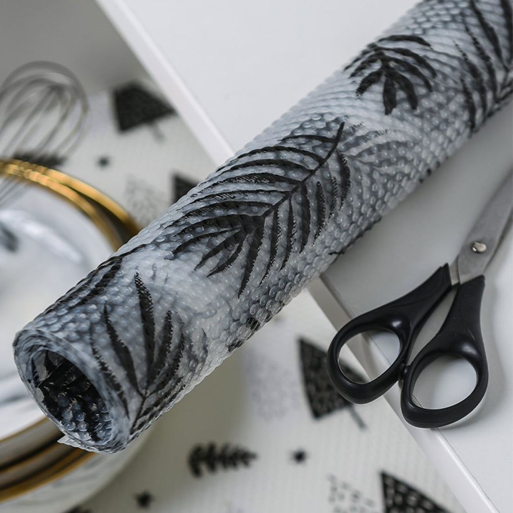 The drawer cabinet mat is convex dots on bottom enhances the friction between the liner and items on it,prevent fragile item slipping off,It protects your shelves,drawer,cabinets,and refrigerator as liner from scratching.
