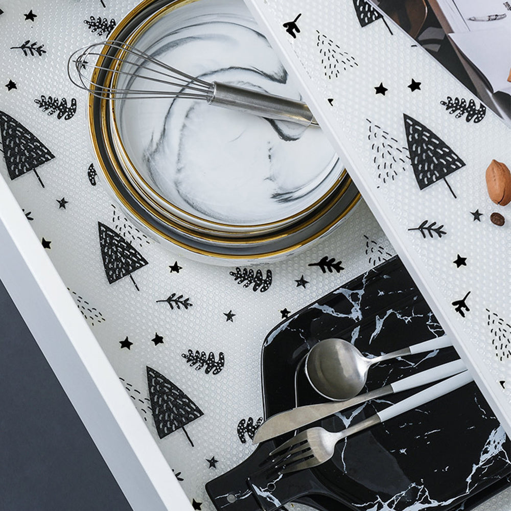The drawer cabinet mat is convex dots on bottom enhances the friction between the liner and items on it,prevent fragile item slipping off,It protects your shelves,drawer,cabinets,and refrigerator as liner from scratching.