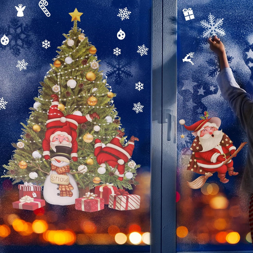 2 Sheets Christmas Window Sticker Self-Adhesive Santa Claus Window Decals Holiday Decal Window Decoration