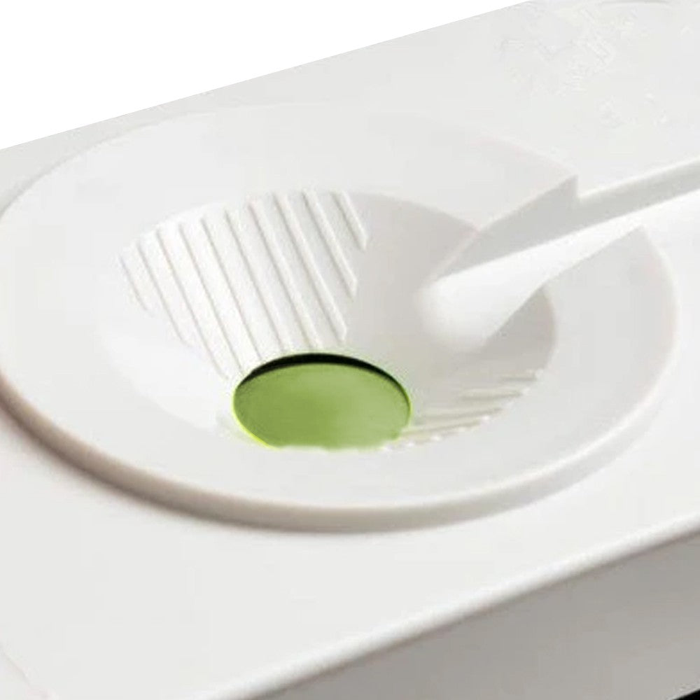 Easy to use, press the button and the dirty rinse water will drain into the bottom reservoir while automatically refilling the well with clean water.