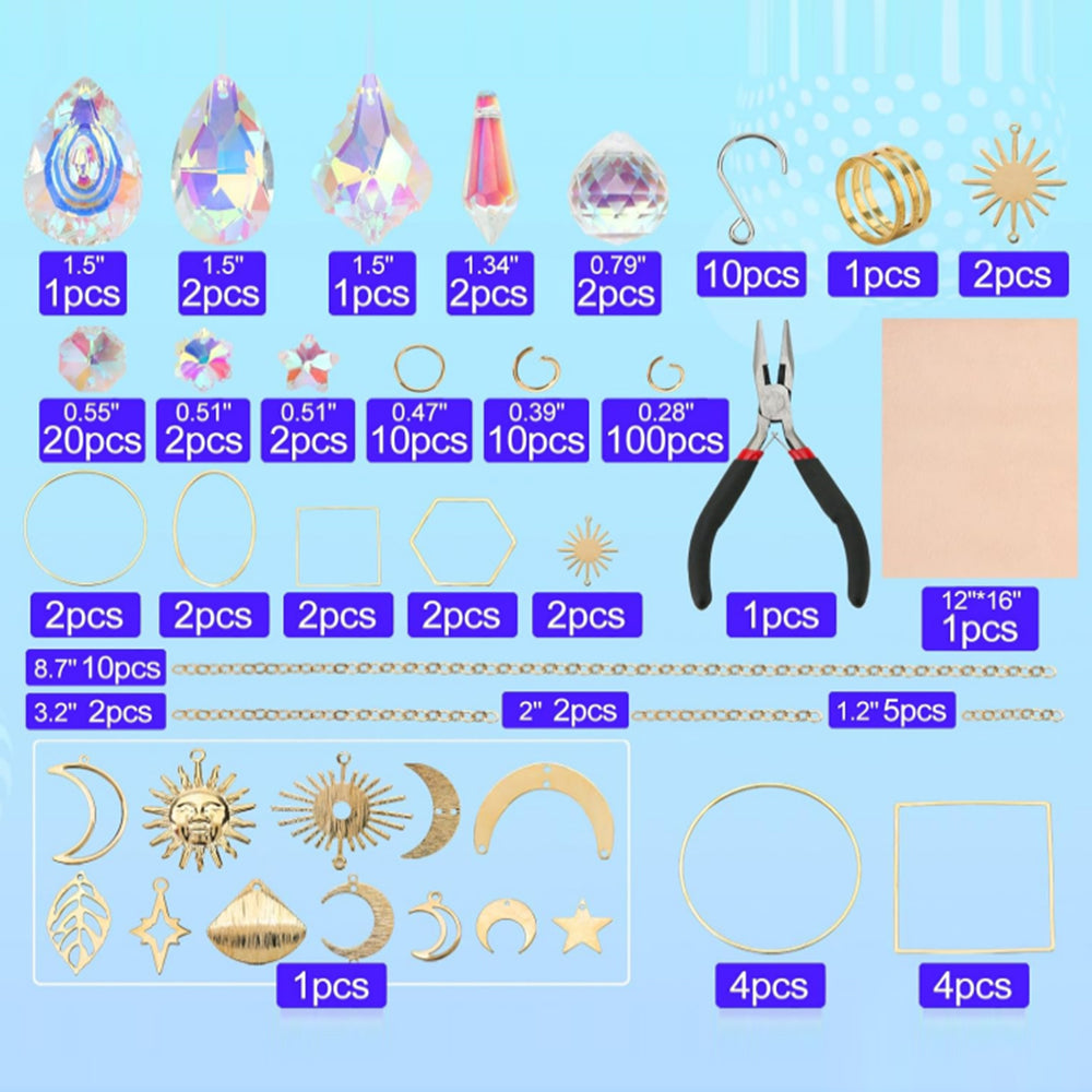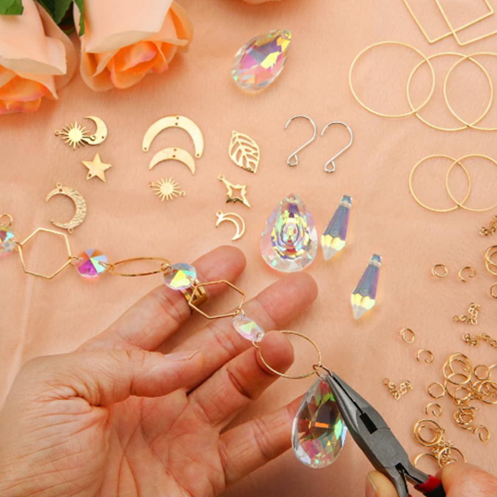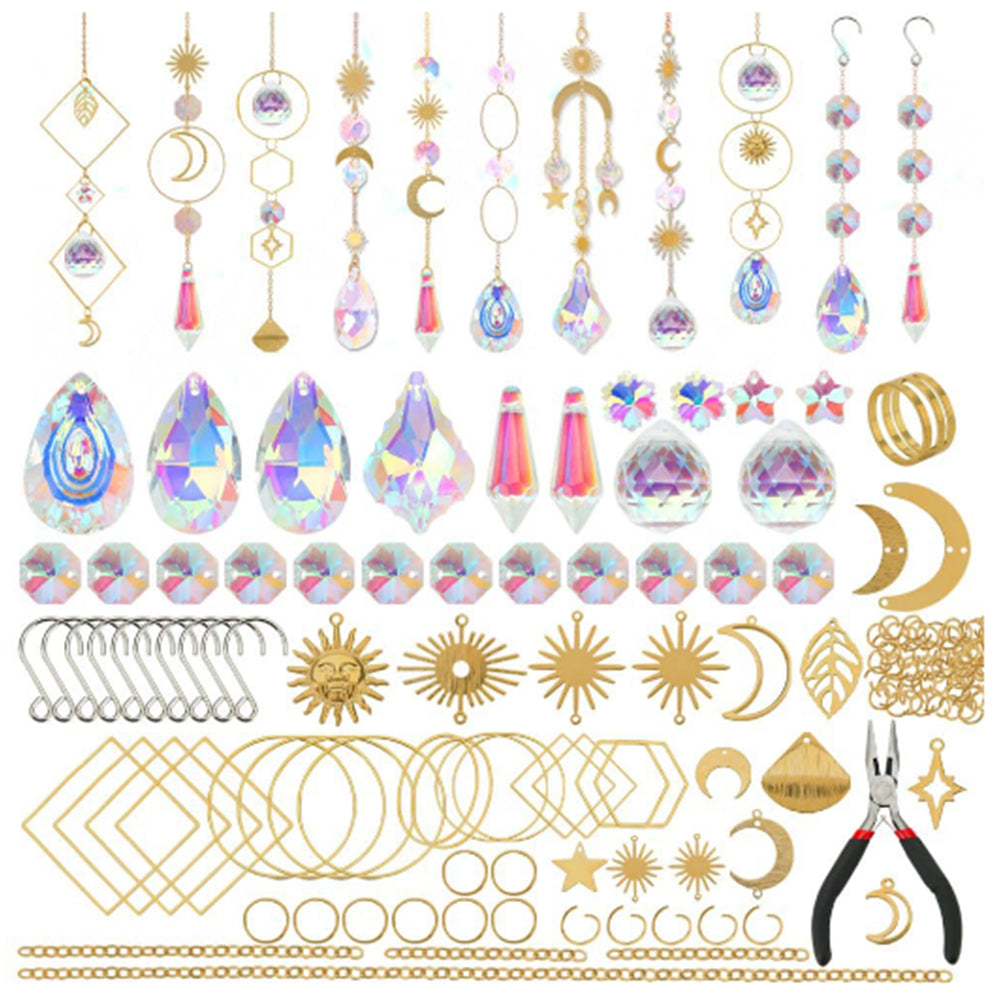 200Pcs DIY Sun Catchers Making Kits Glass Suncatchers Hanging Prism Garden Home Decor Gold