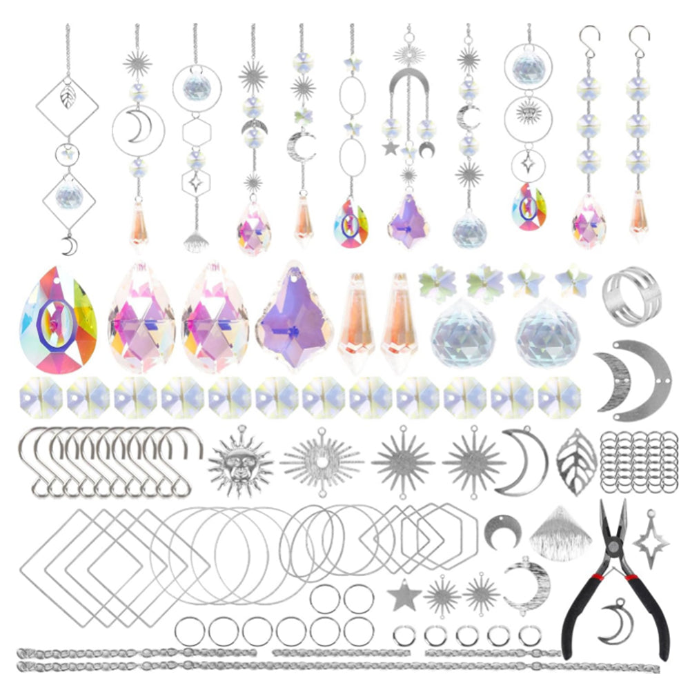 200Pcs DIY Sun Catchers Making Kits Glass Suncatchers Hanging Prism Garden Home Decor Silver