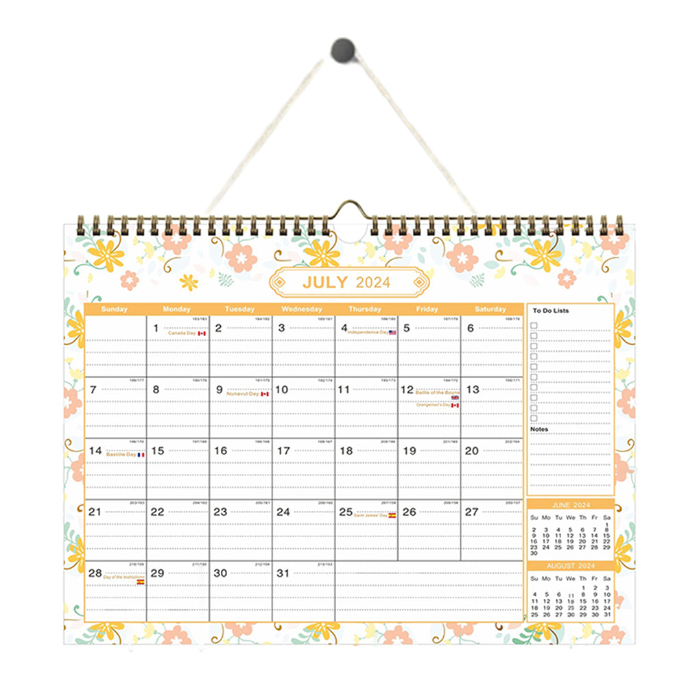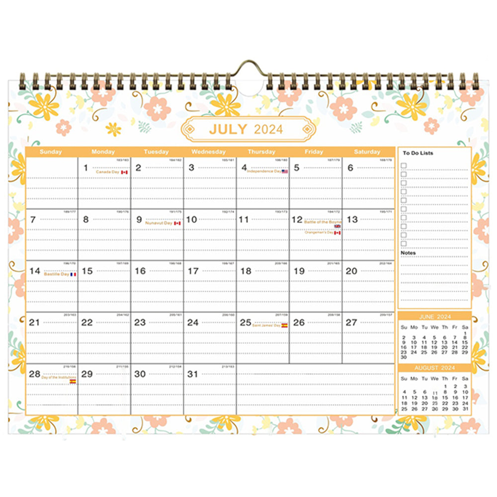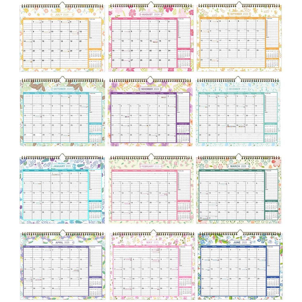 - This wall calendar is from July 2024 to December 2025, a total of 18 months.