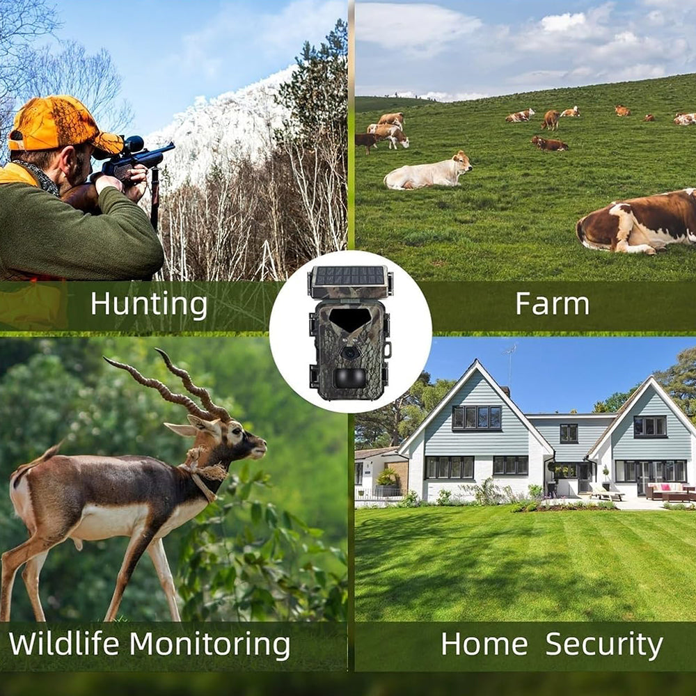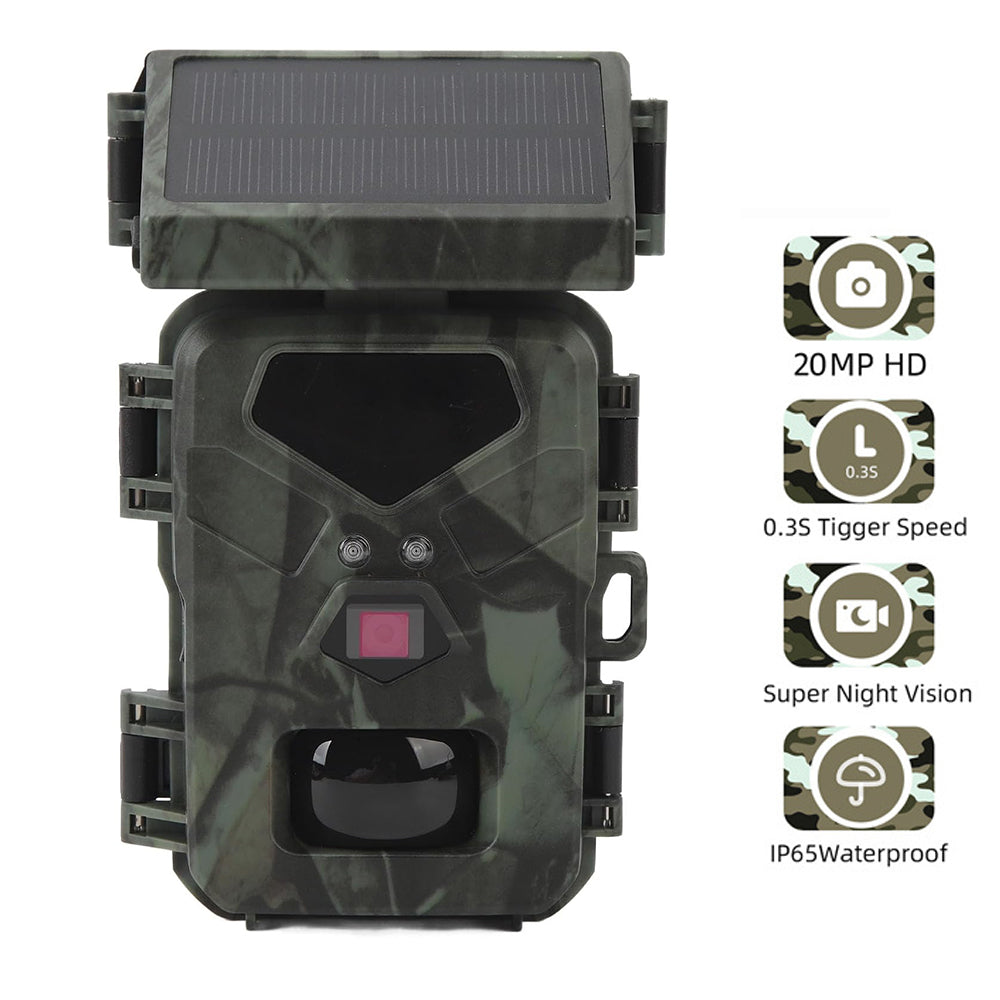20MP Solar Trail Camera 1080P Rechargeable Recording Video Camera with Night Vision for Wildlife Monitoring Home Security