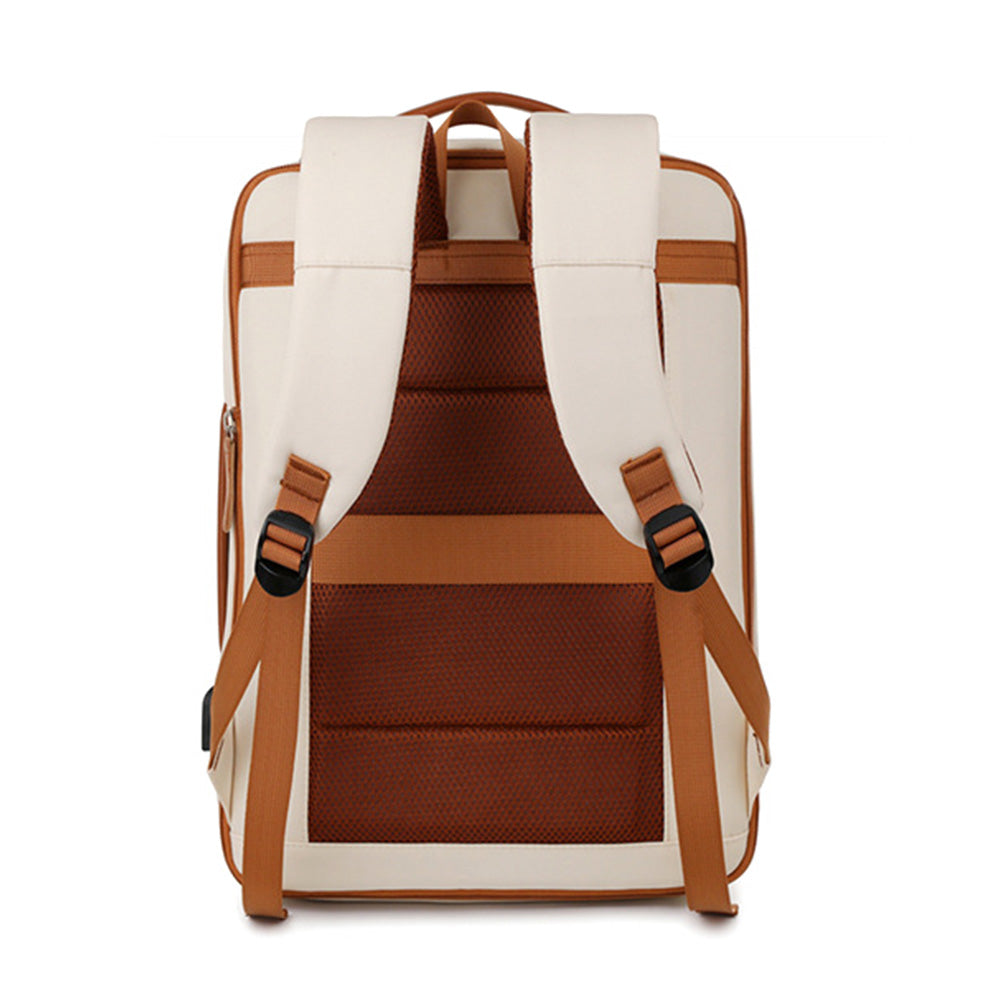 26L Expandable Commuter Backpack Water Resistant Laptop Bag with USB Charging Port Beige