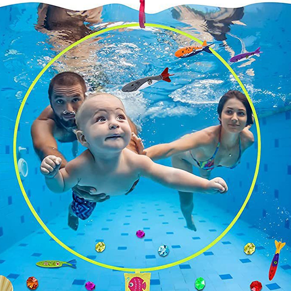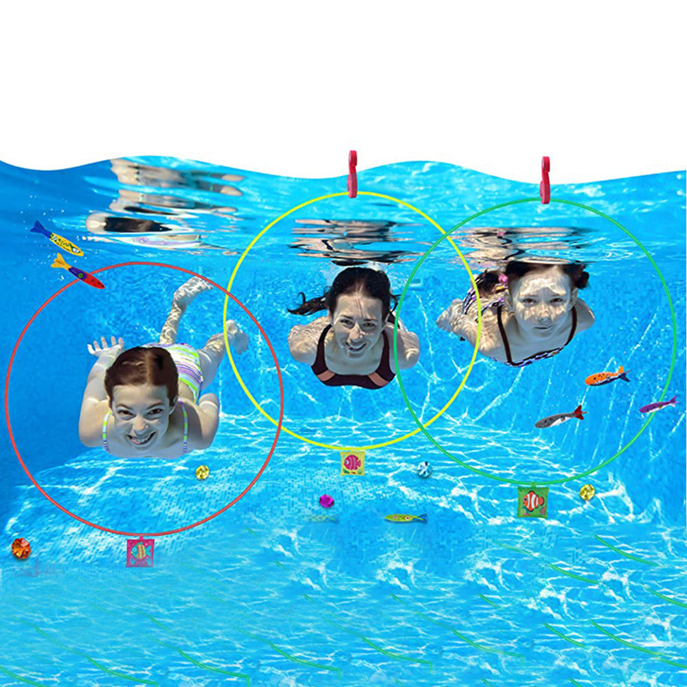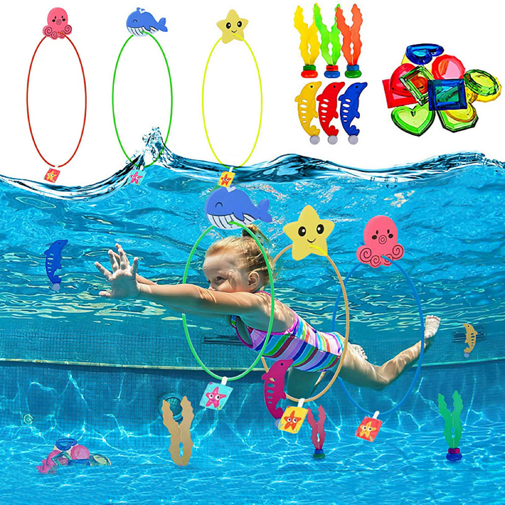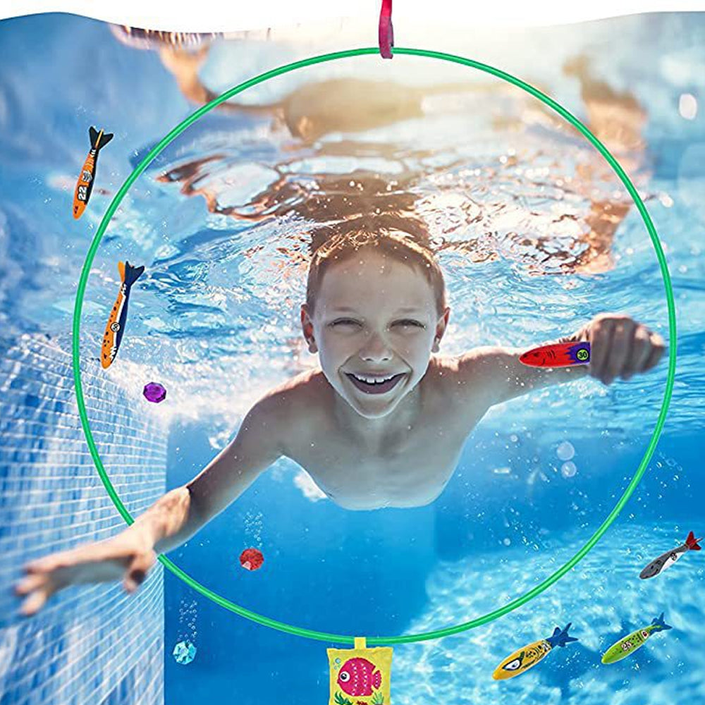 27-Piece Diving Toys Set for Kids Underwater Floating Pool Toys Diving Thru Rings Swimming Training Supplies