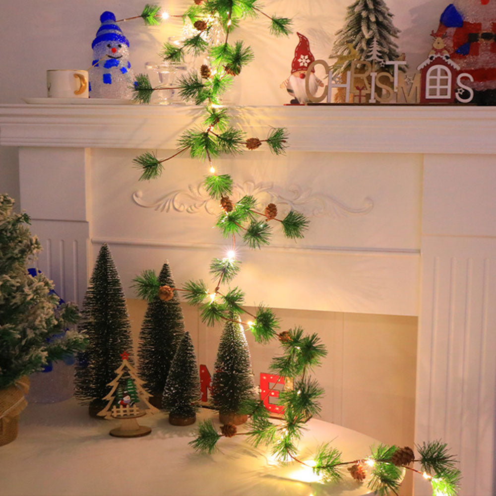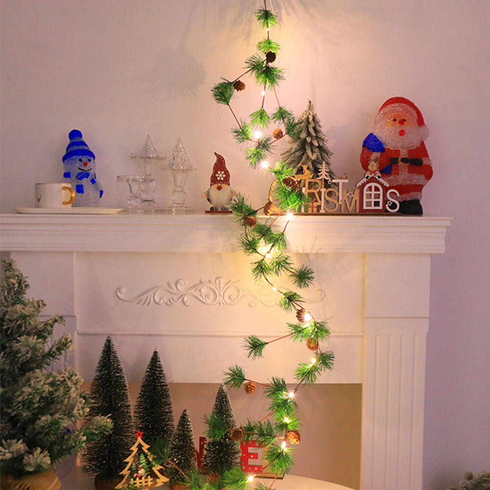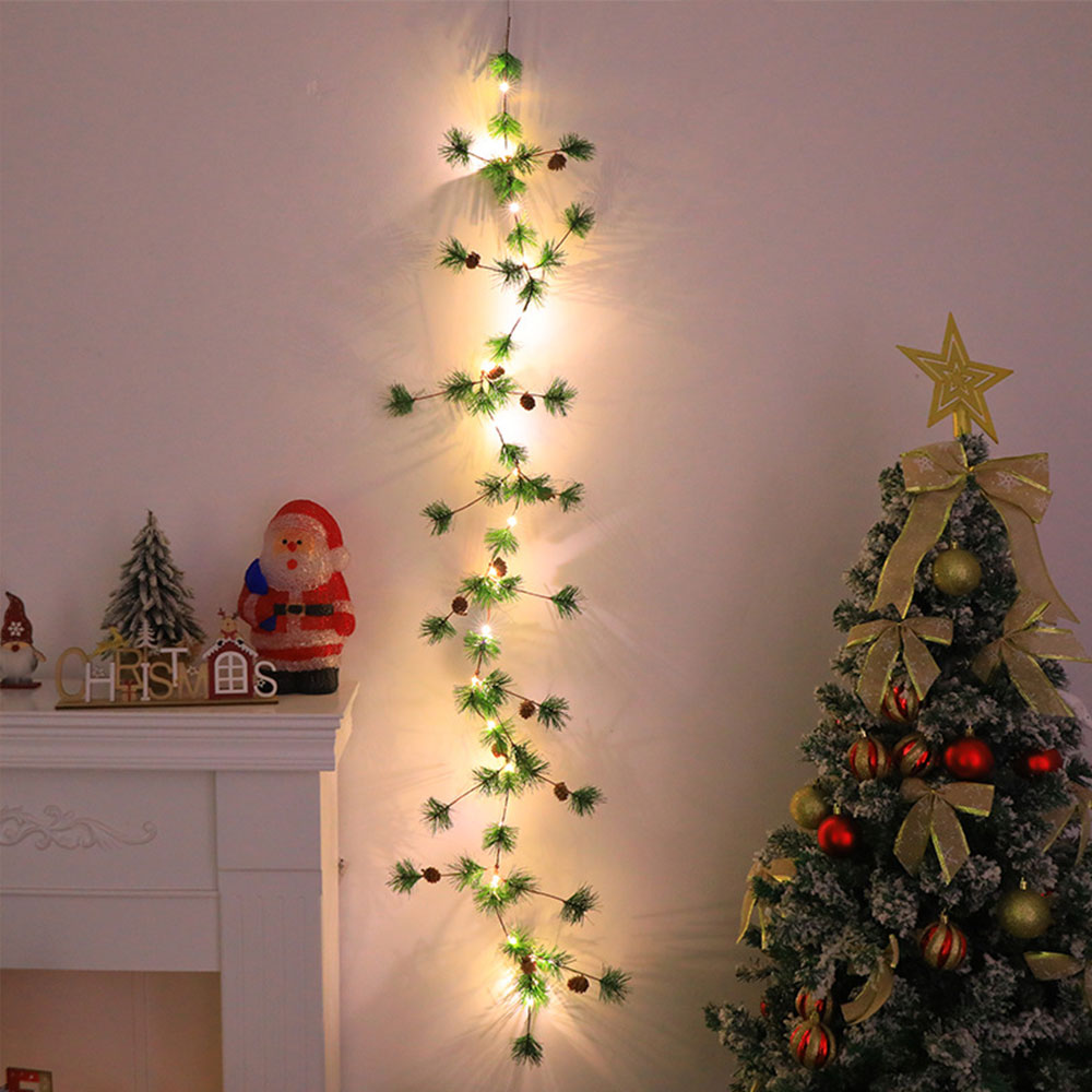 - The rattan string lights are equipped with artificial pinecones, pine needles, red berries, or bells, the length is 2m with 20 LED lights and it has 2 modes for you to choose from: Flash and Steady on.
