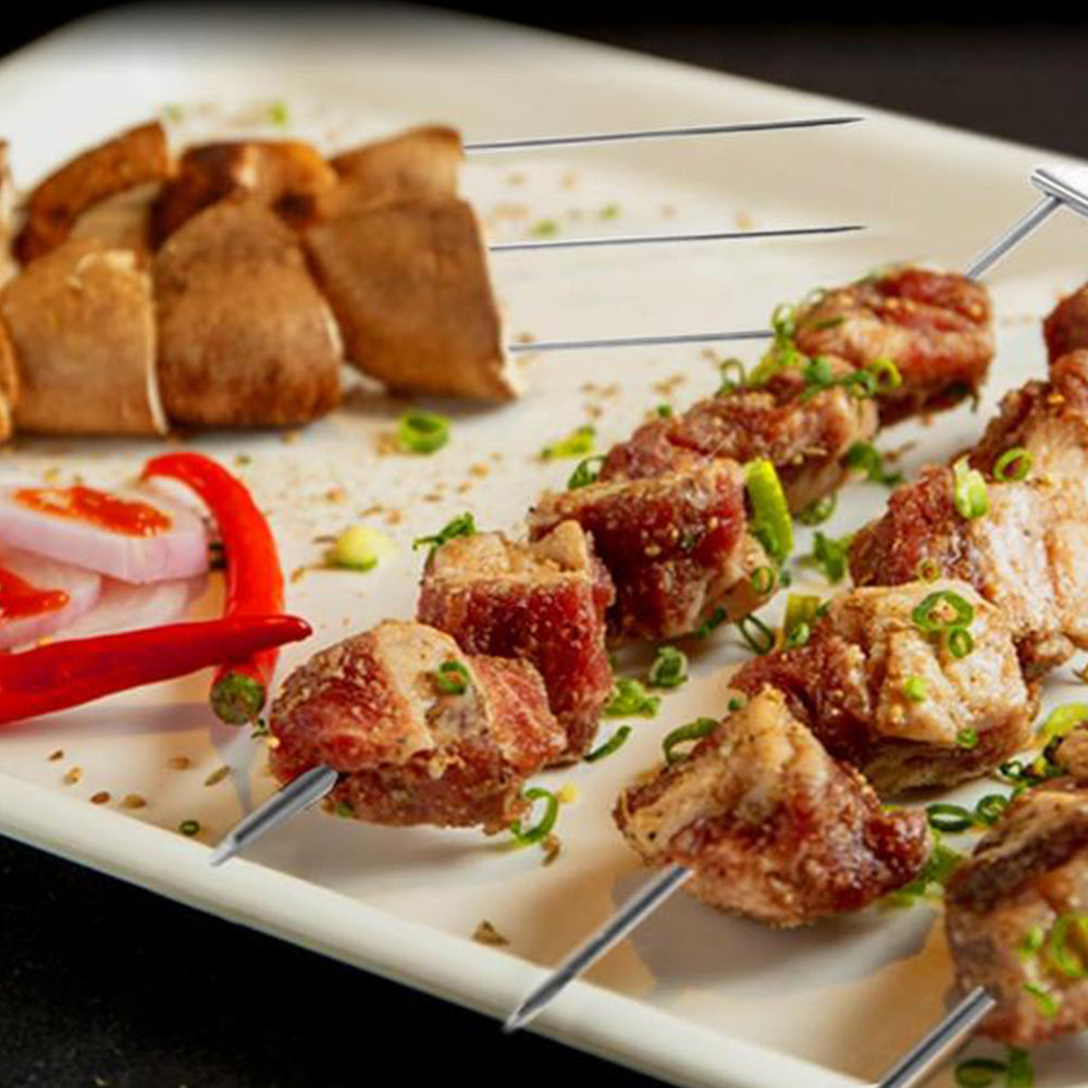 - The 3-prong grill skewers allows you to grill 3 skewers of food at the same time.