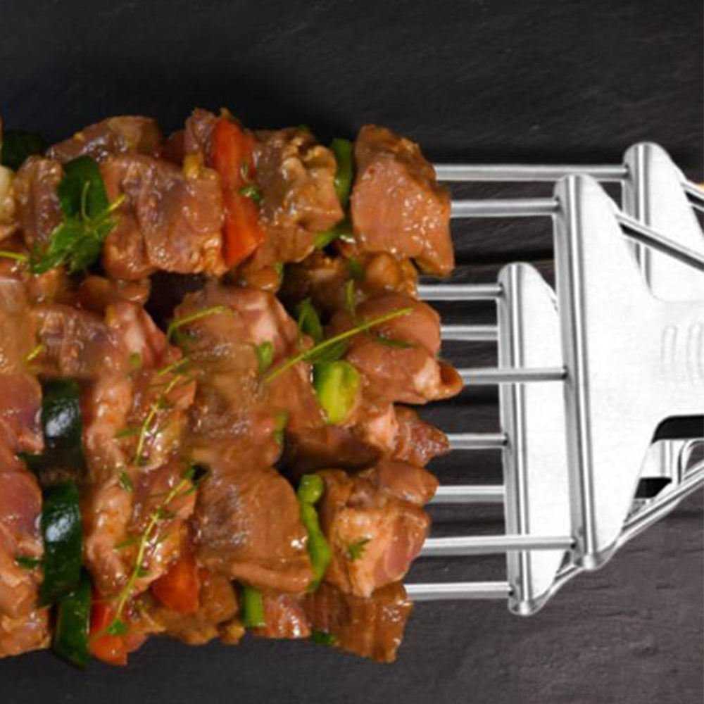 The 3-way grill skewer with an integrated design and a comfortable, heat-resistant handle to keep food secure and easy to grill.
