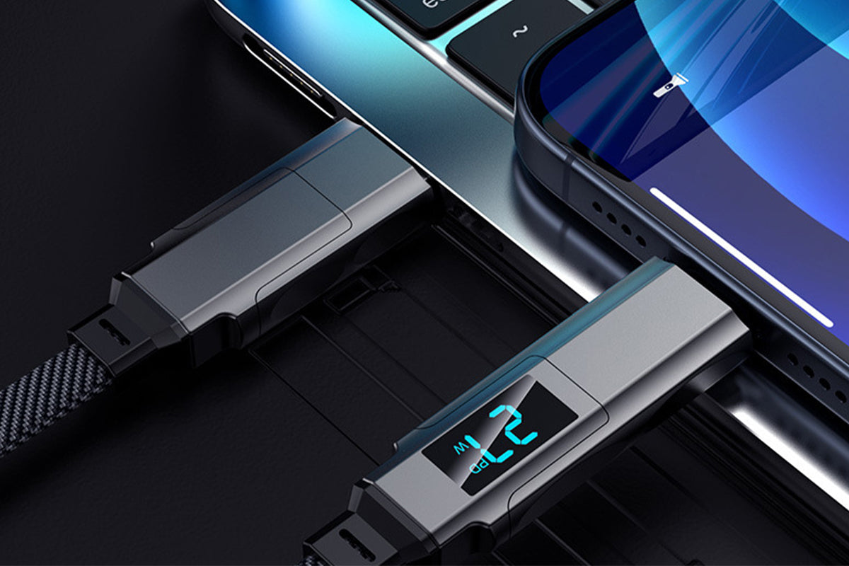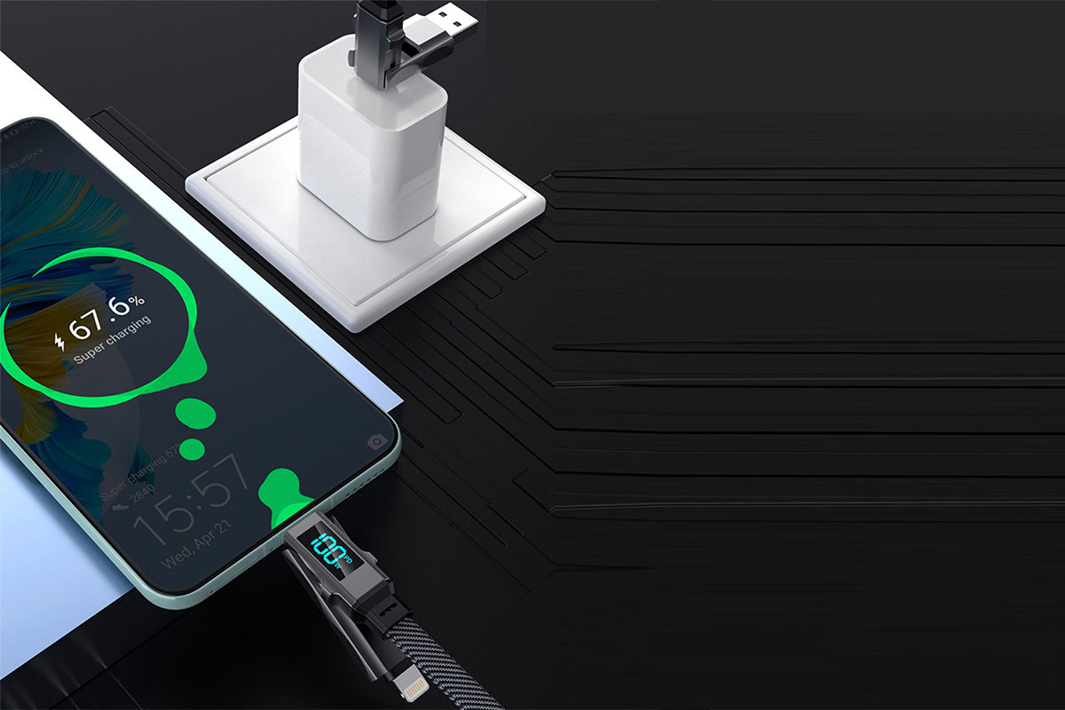 - Braided, Data Transfer, LED Display, Fast Charging