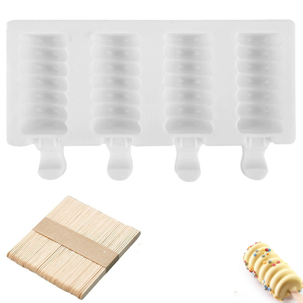 2pcs 4 Cell Silicone Frozen Ice Cream Mould Juice Popsicle Maker Ice Lollipop Mould