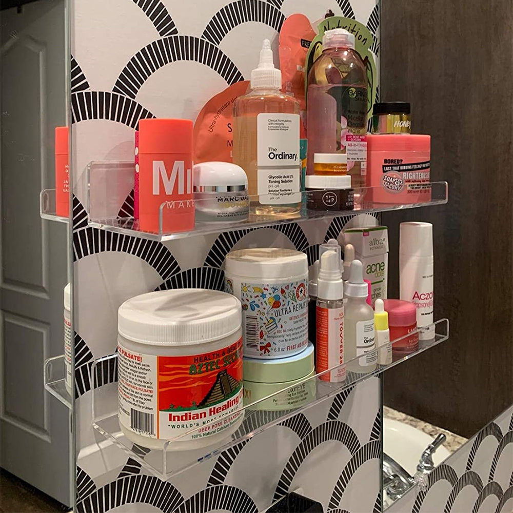 2Pcs Acrylic Floating Wall Ledge Shelf Wall Mounted Shelves Kitchen Spice Rack