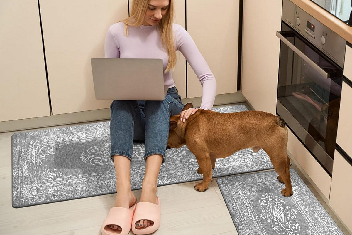 - Enhance your kitchen space with our beautifully designed 2-piece kitchen mat set. Perfect for adding both style and comfort to any home.