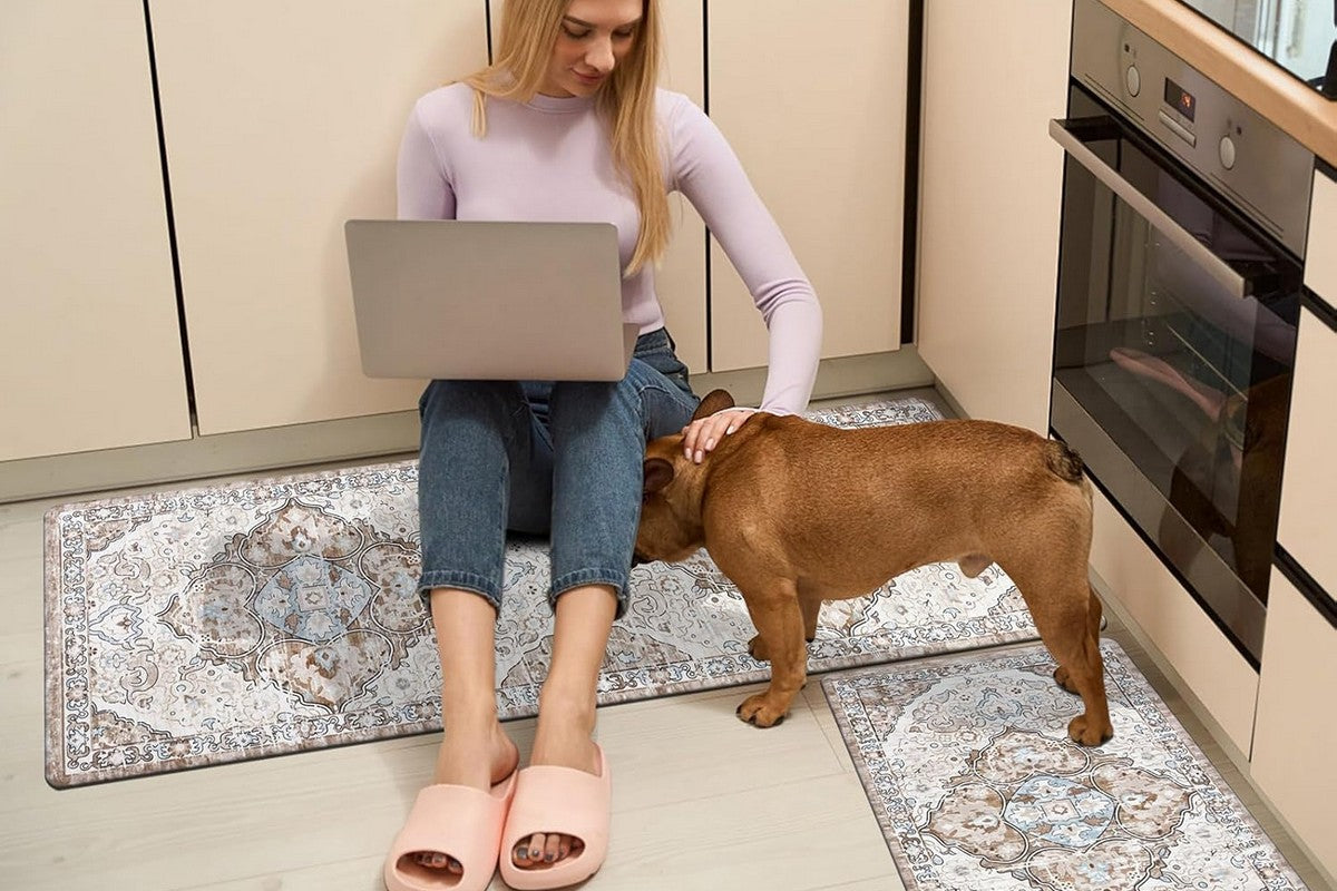 - Enhance your kitchen space with our beautifully designed 2-piece kitchen mat set. Perfect for adding both style and comfort to any home.