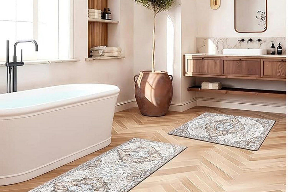 - Equipped with a non-slip backing that keeps the mats securely in place on various surfaces such as wood, tile, ceramic, marble, and more.