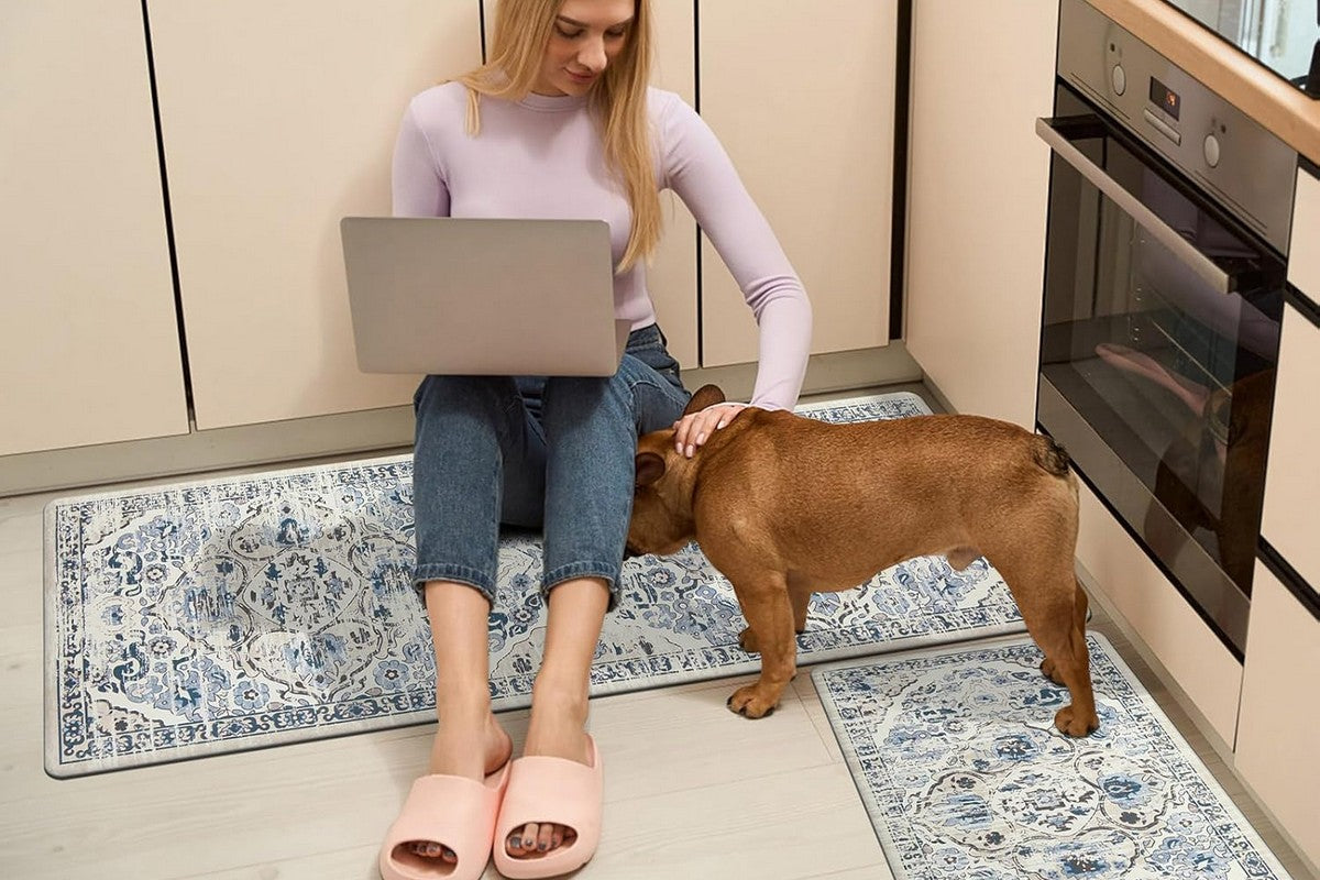 - Enhance your kitchen space with our beautifully designed 2-piece kitchen mat set. Perfect for adding both style and comfort to any home.