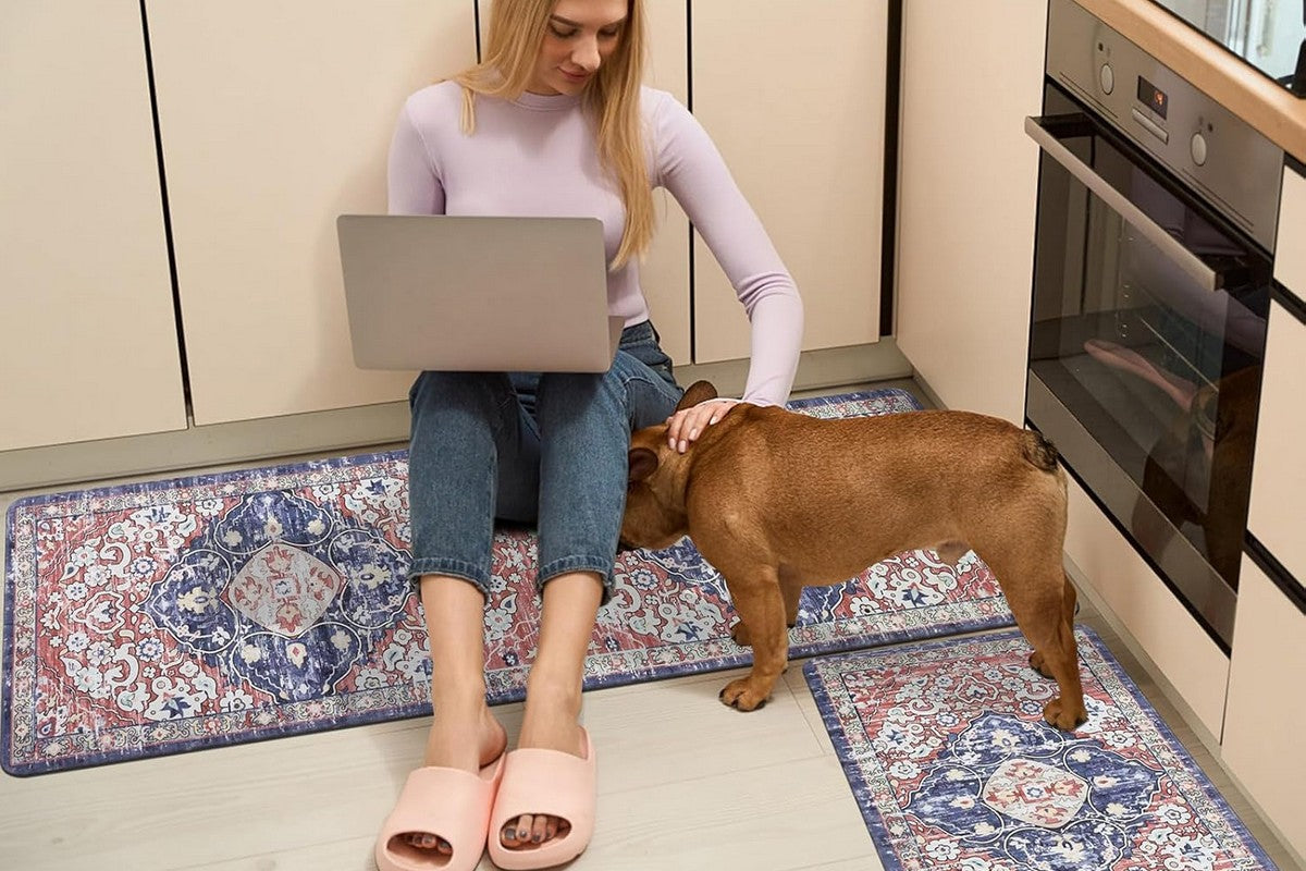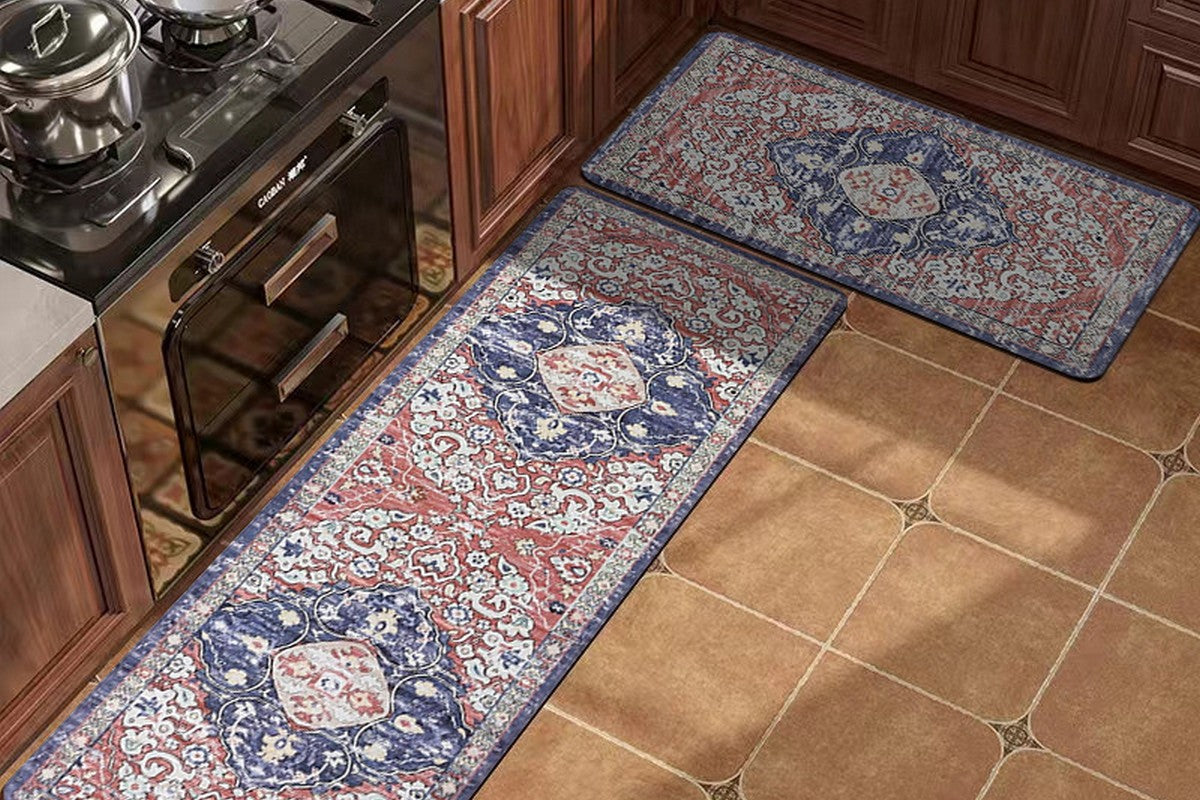 - Enhance your kitchen space with our beautifully designed 2-piece kitchen mat set. Perfect for adding both style and comfort to any home.