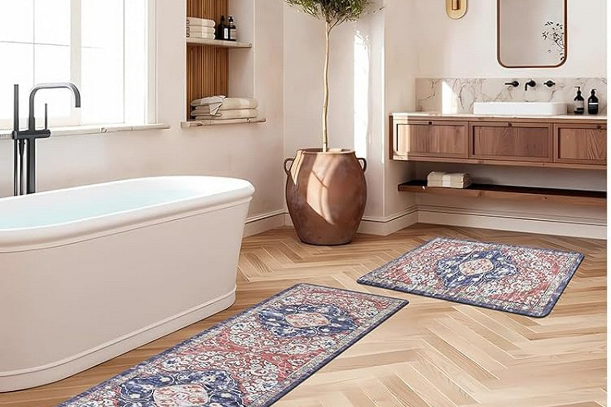 - Equipped with a non-slip backing that keeps the mats securely in place on various surfaces such as wood, tile, ceramic, marble, and more.