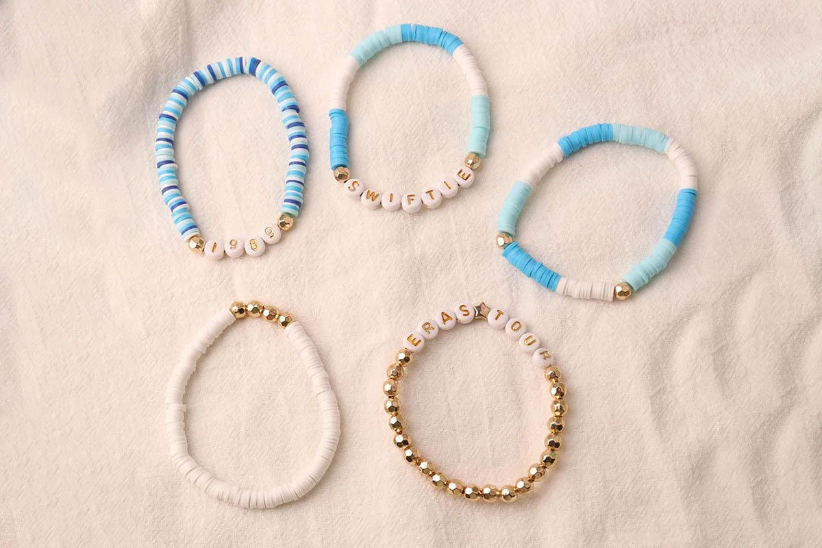 Beaded bracelets inspired by Taylor's albums; each set includes 5 handmade bracelets.