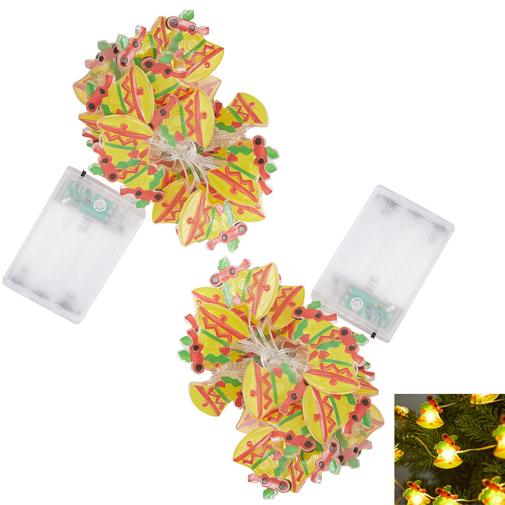 2pcs 2M 20LED Battery Operated Christmas Jingle Bell Gift Box String Lights Christmas Decorations for Party