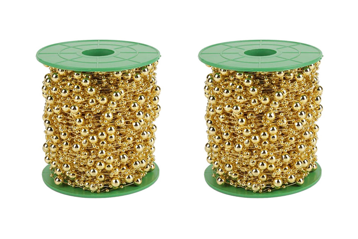 2Pcs DIY Decor Christmas Tree Artificial Pearls Chain Plastic Bead Roll String-Gold