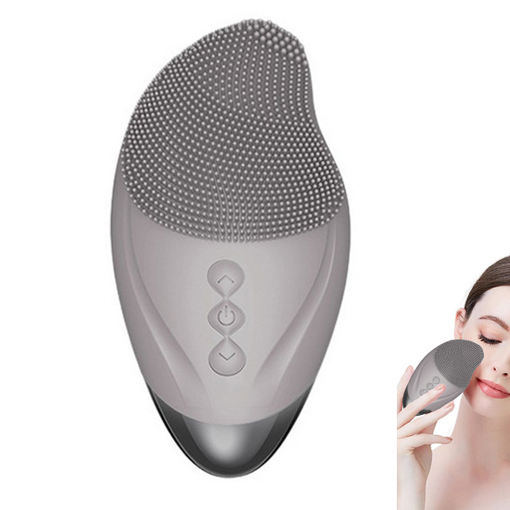 2pcs Facial Cleansing Brush Electric Soft Silicone Face Brush for Exfoliation Cleansing Massaging-Purple and Grey