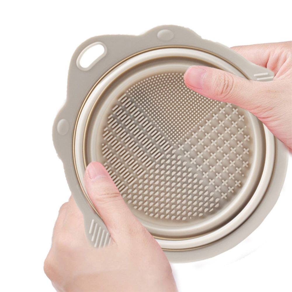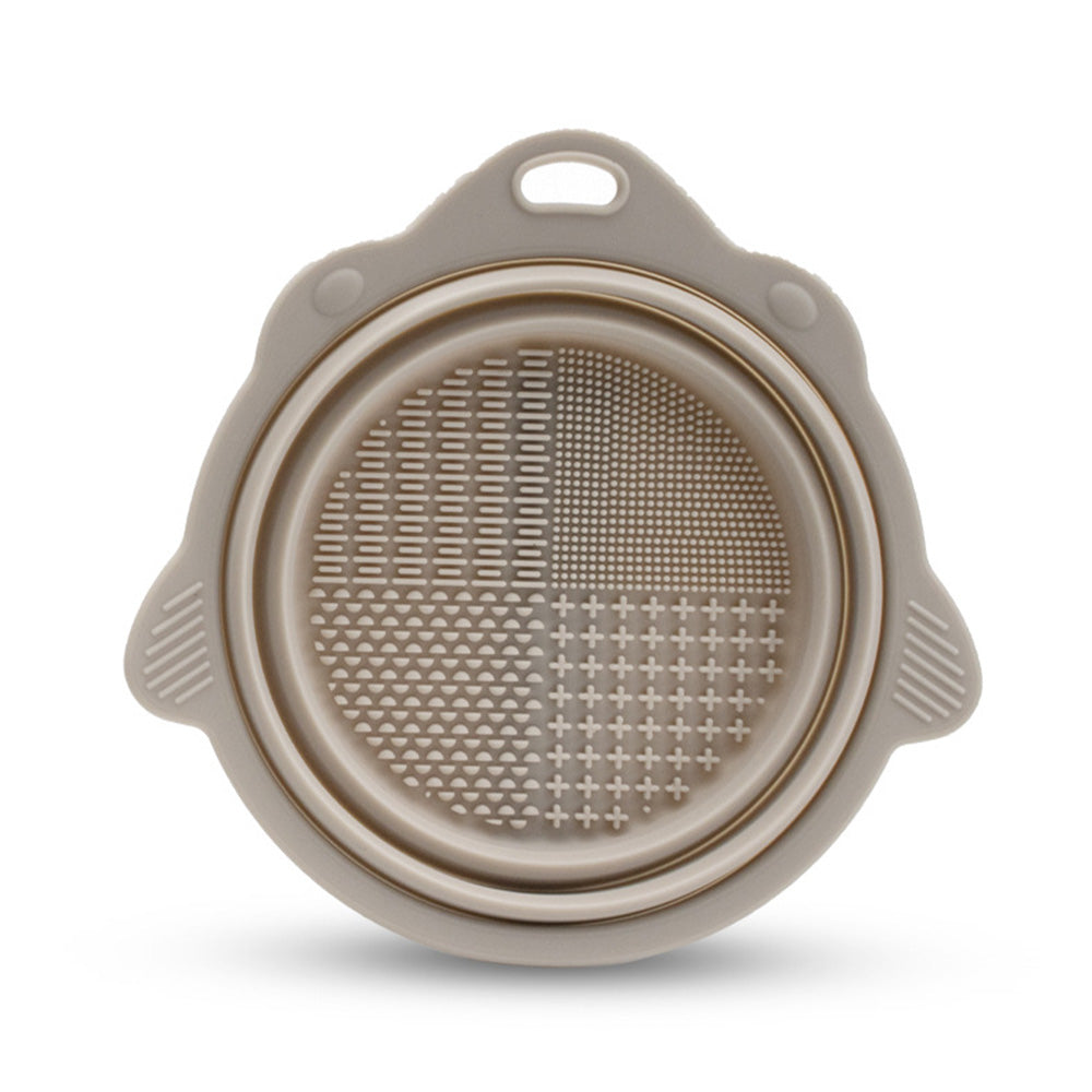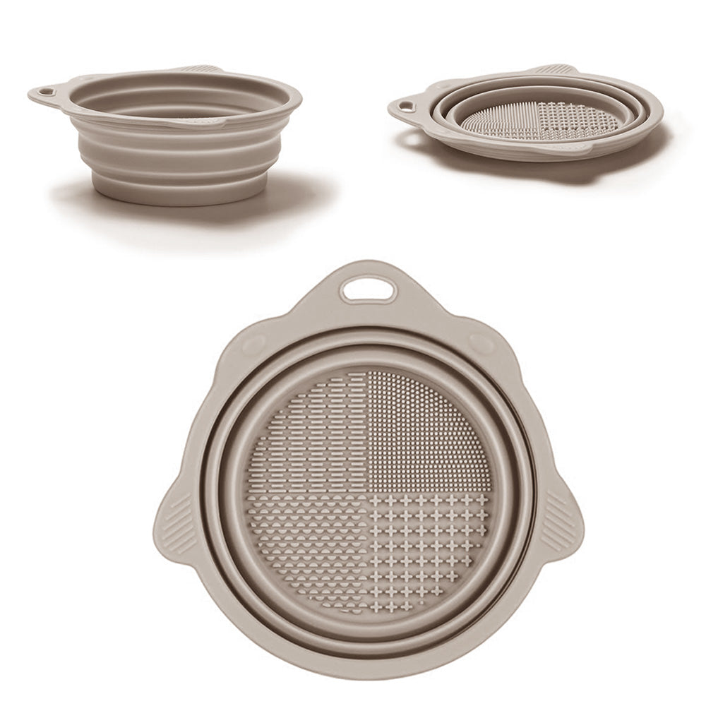 2Pcs Foldable Makeup Brush Cleaner Bowl Portable Silicone Cleaning Tool for Cosmetic Brushes Powder Puffs Sponges Khaki