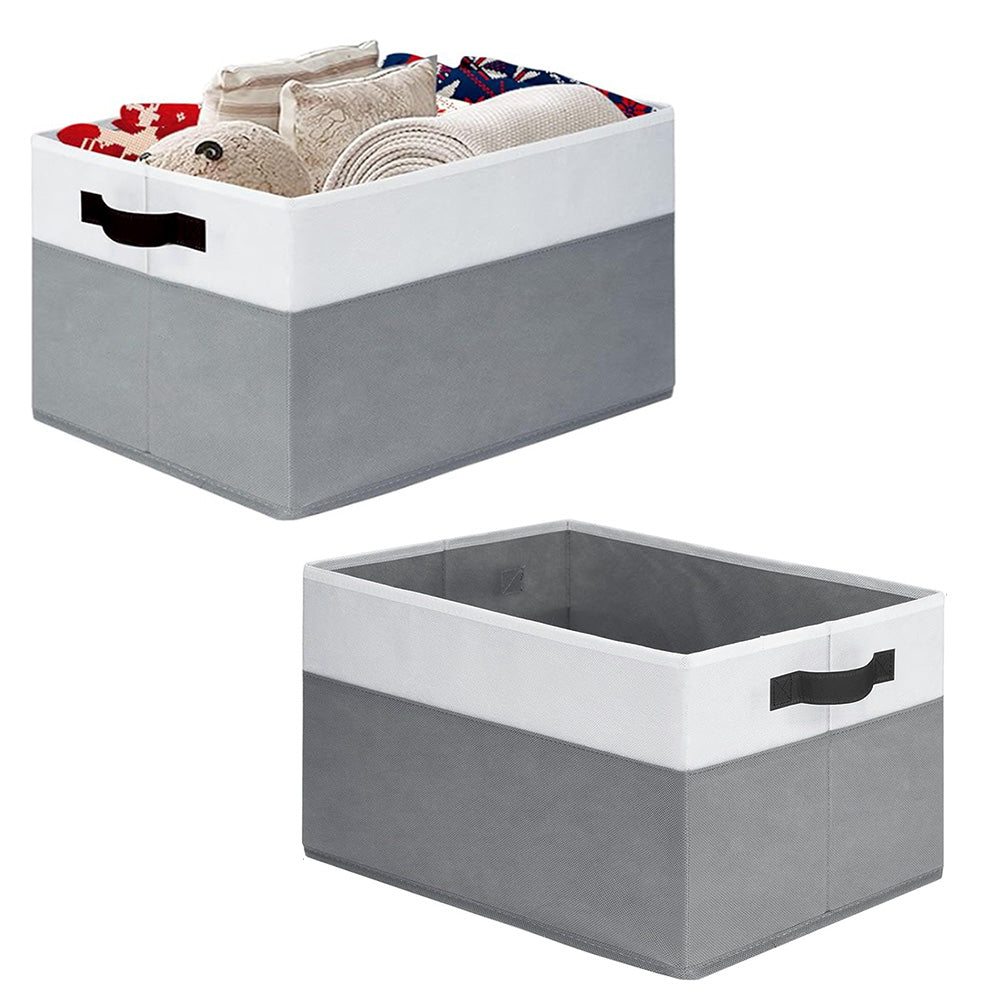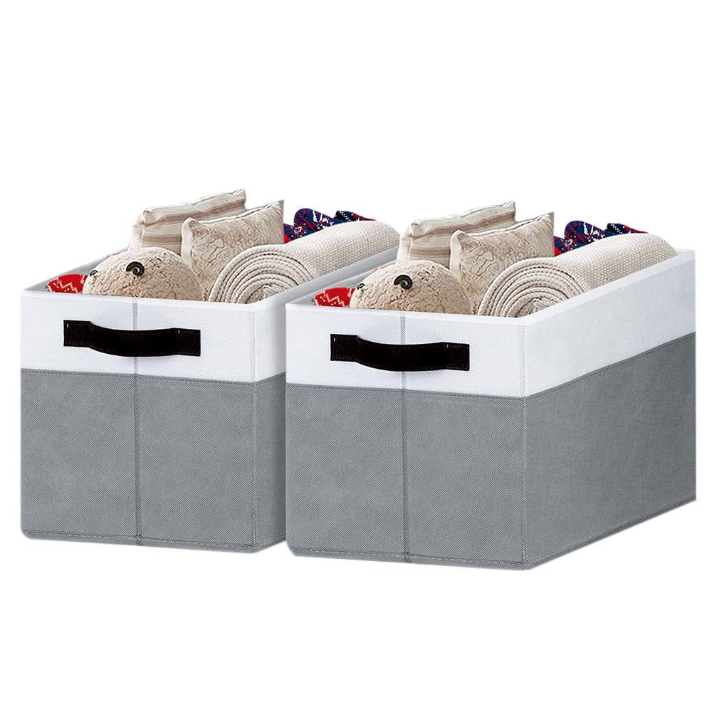 2Pcs Foldable Storage Bins Large Closet Storage Baskets for Clothes Blanket Beddings Towels Gray