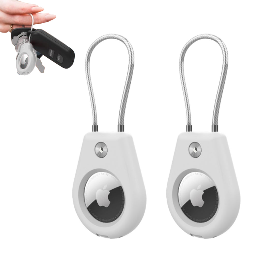 2Pcs For Apple AirTag Holders with Keychain AirTag Cases for Keys Luggage Pet White