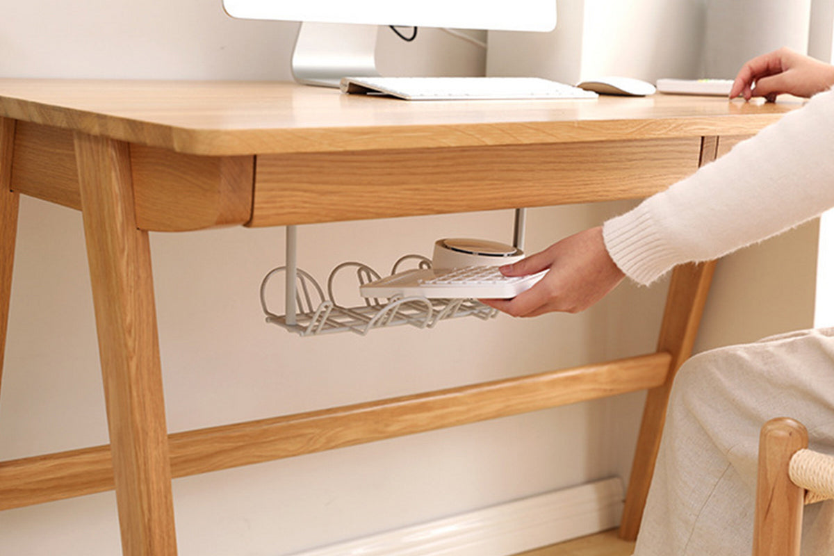 - Ideal for storage of small items under the table such as power strip, plugs, and wires
