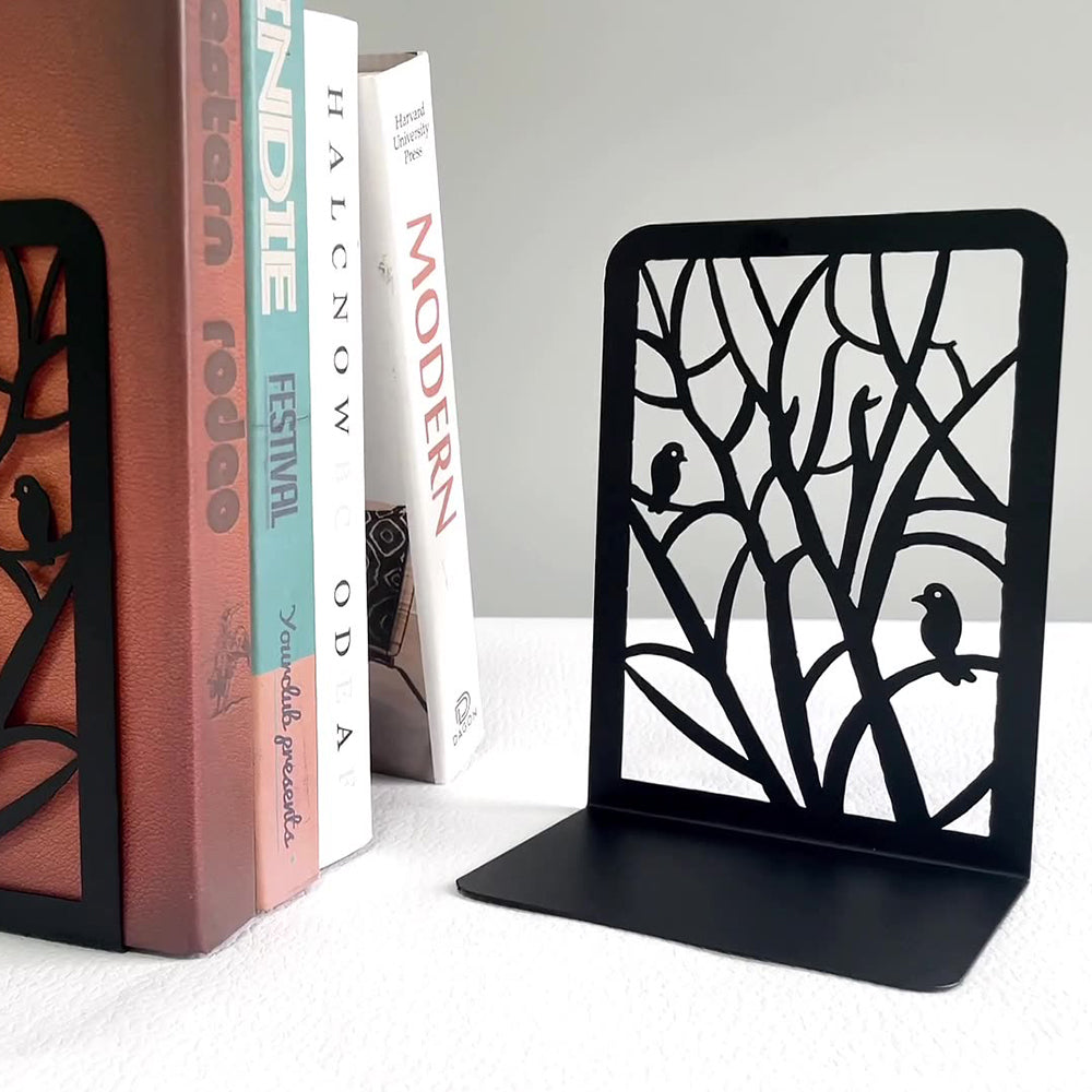 2Pcs Metal Bookends Decorative Book Ends for Shelves Book Holders Style 3