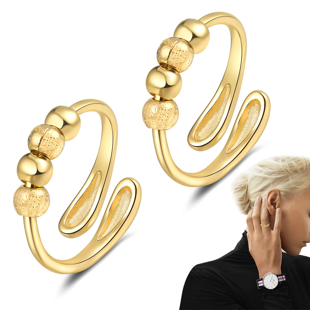 2Pcs Opening Fidget Spinner Rings for Women Adjustable Stress Spinning Rings Gold