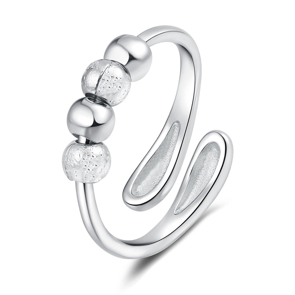 Relieve stress and stay calm with this elegant spinner ring—featuring rotating beads and an adjustable open design for a comfortable fit.