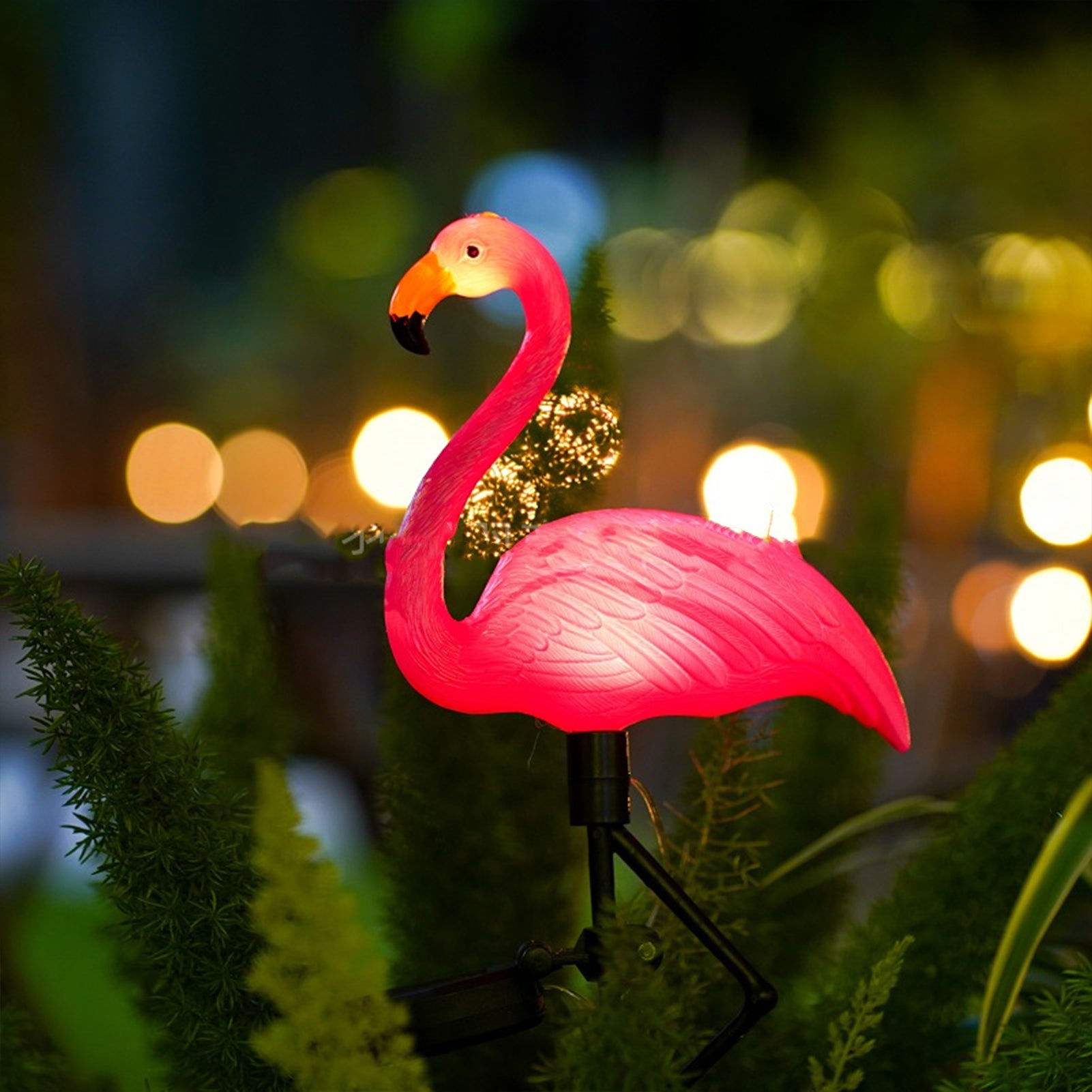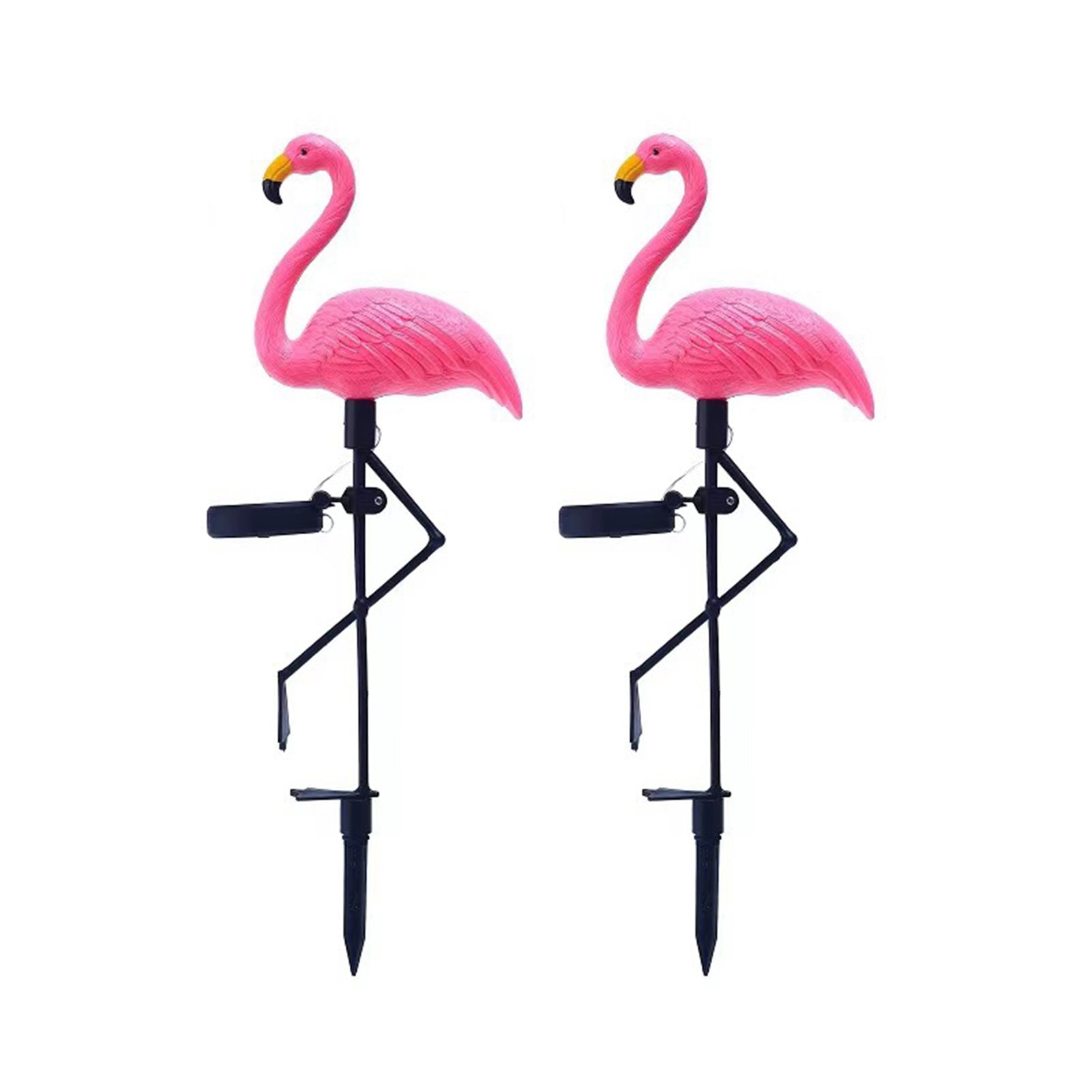 2Pcs Outdoor Lawn Decor Solar Lights Flamingos Garden Decor Lights