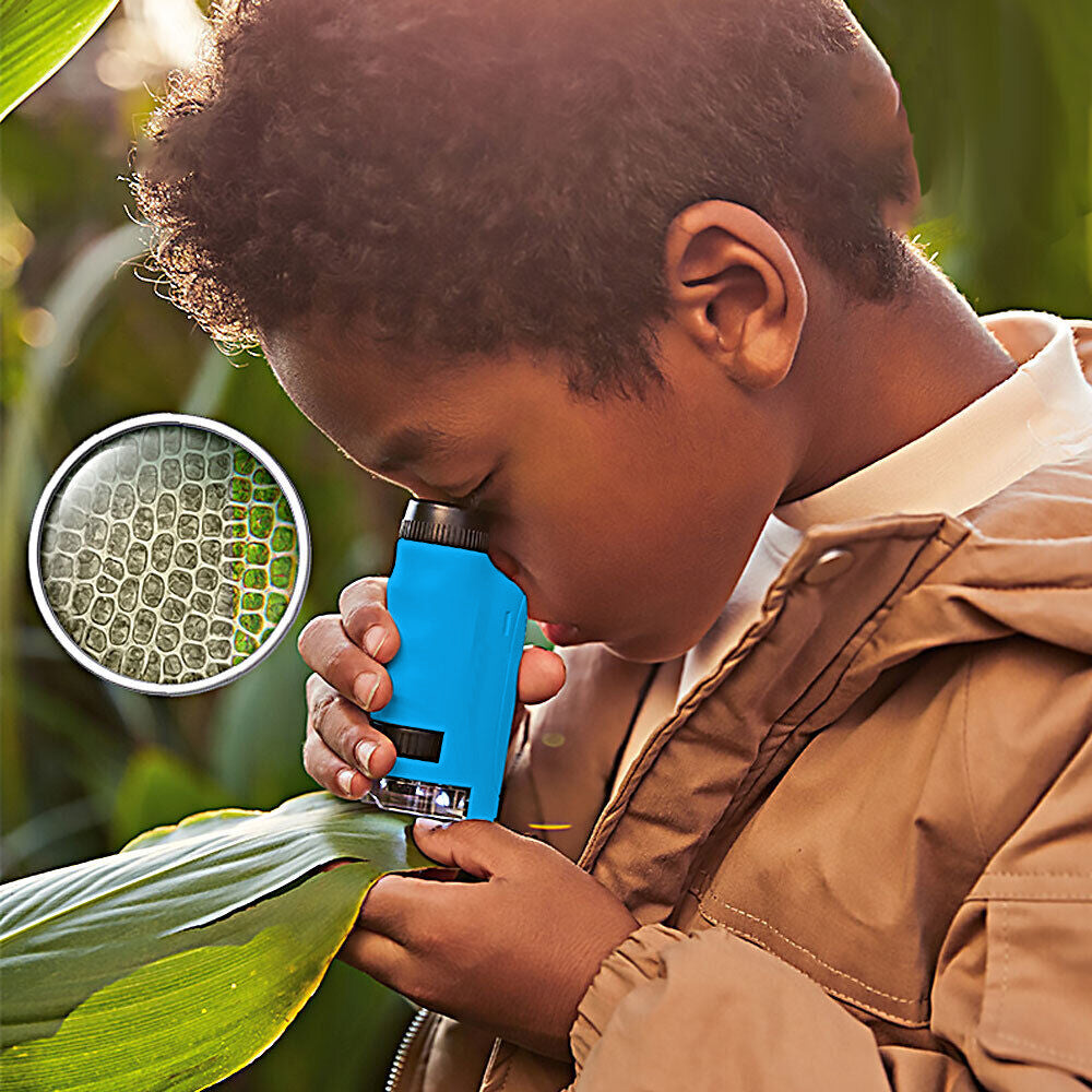 This kids pocket microscope 60X-120X handheld magnifying lens with led light.