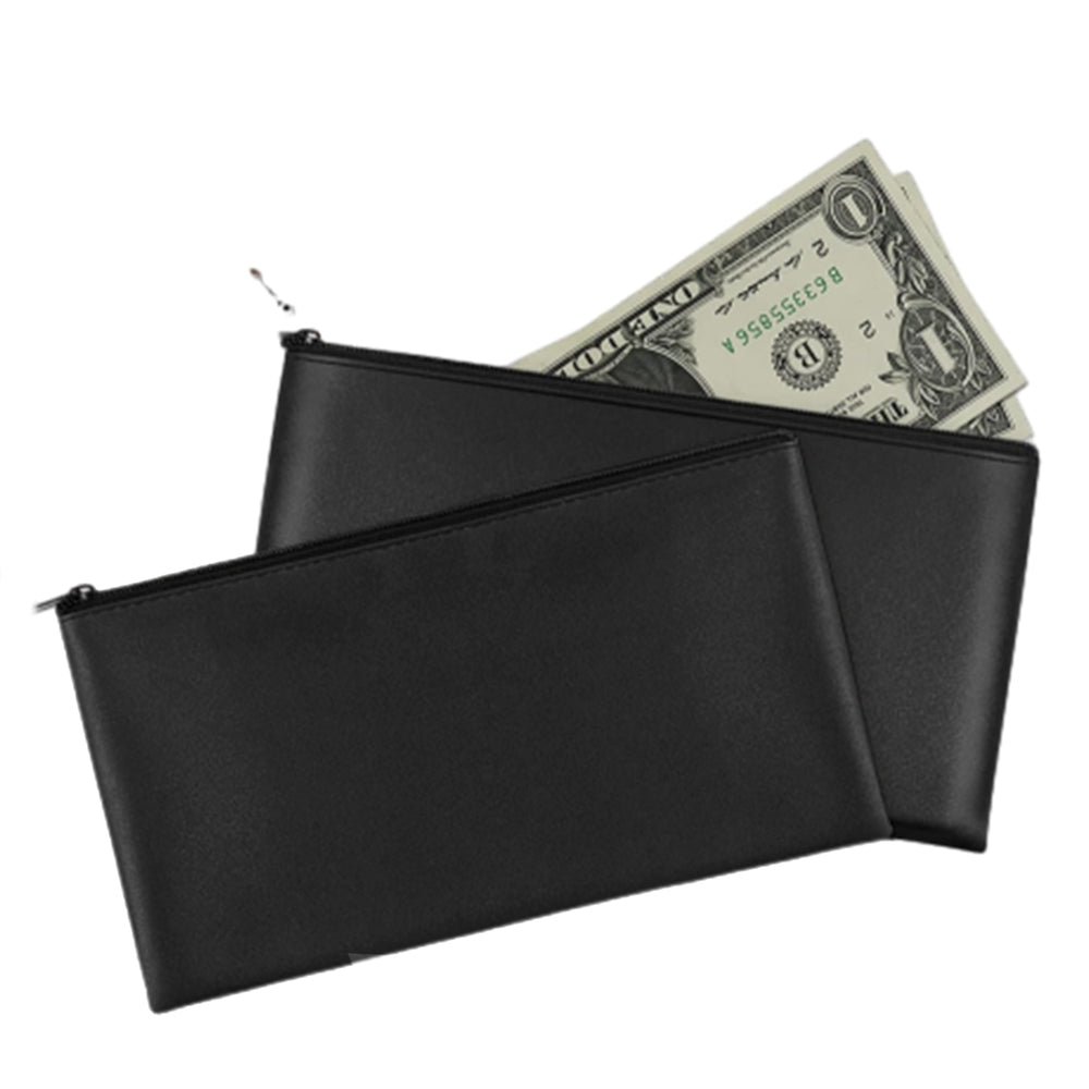 2Pcs PU Leather Storage Bag with Zipper Money Pouch Cash Storage Bag Black