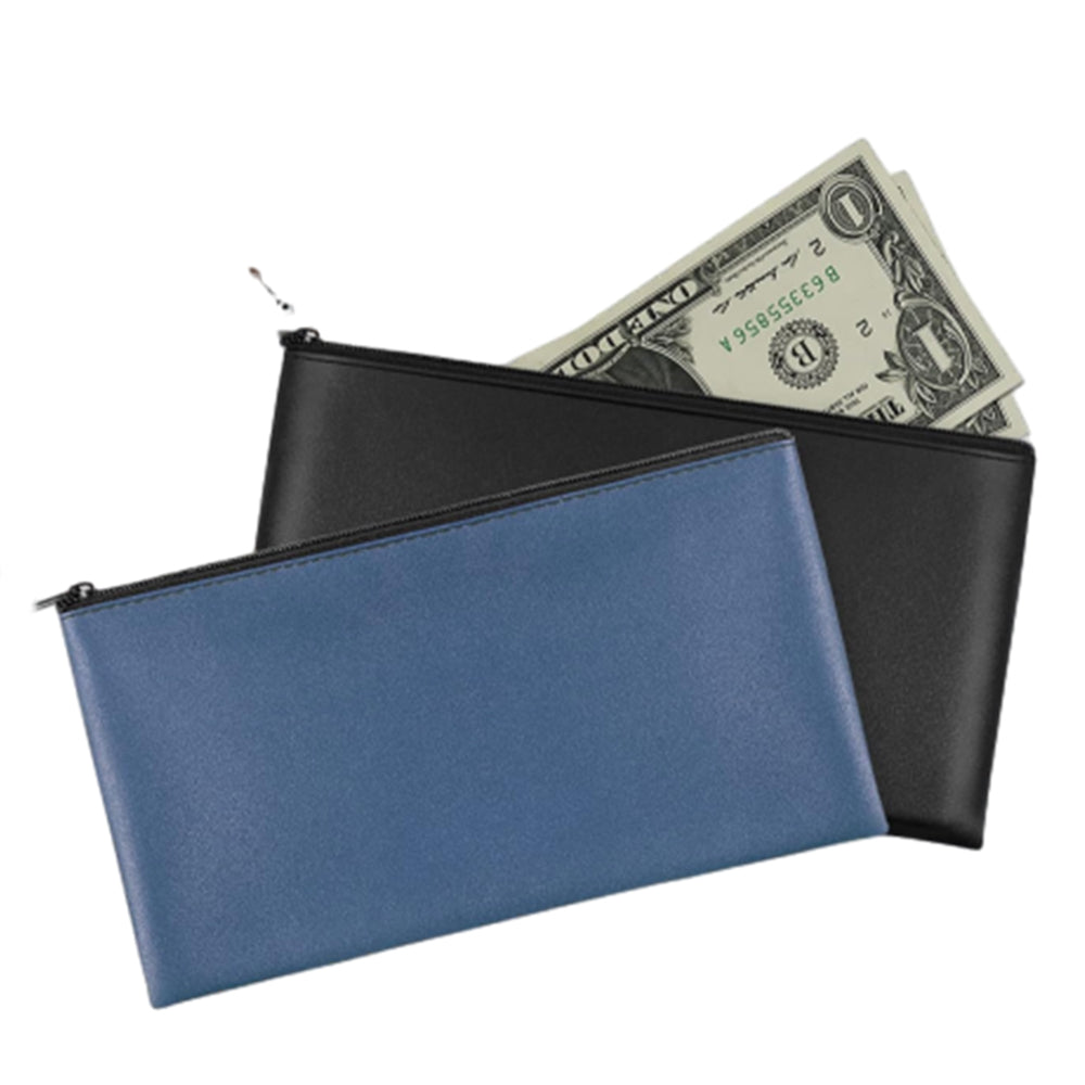 2Pcs PU Leather Storage Bag with Zipper Money Pouch Cash Storage Bag Black and Navy Blue