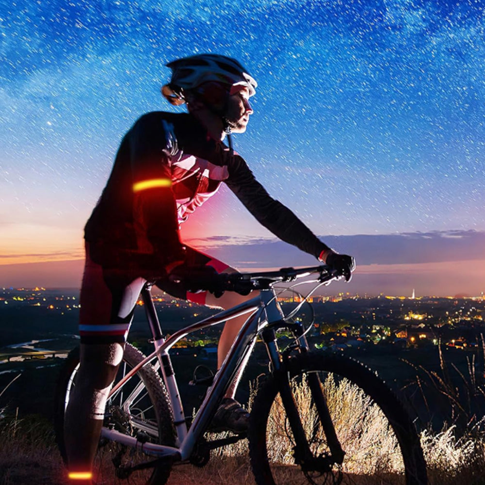 A flexible LED slap wristband with three lighting modes, designed for night running security, offering high visibility and easy wear with a lightweight, rechargeable design.