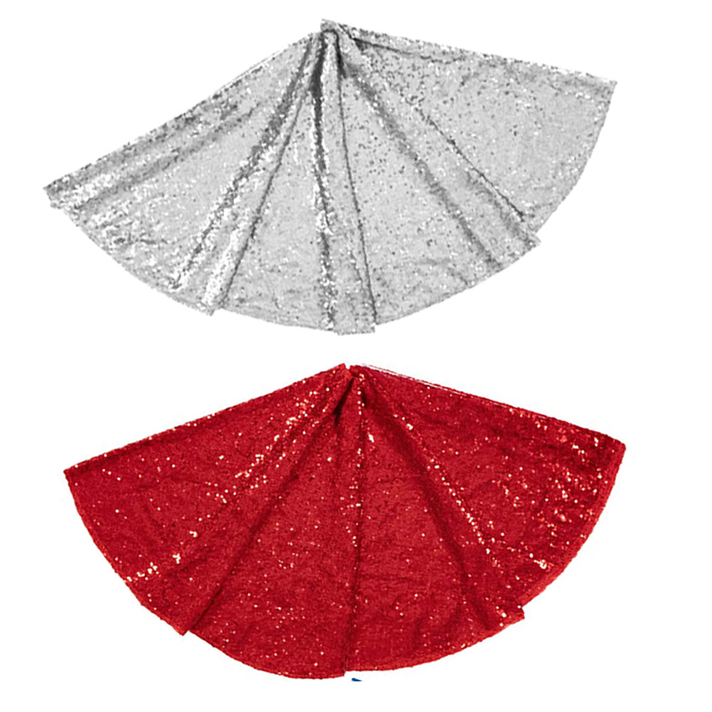 2pcs Round Christmas Tree Skirt Sparkle Sequins Xmas Tree Mats Tree Decorations for Home Decor -Red and SilveRed